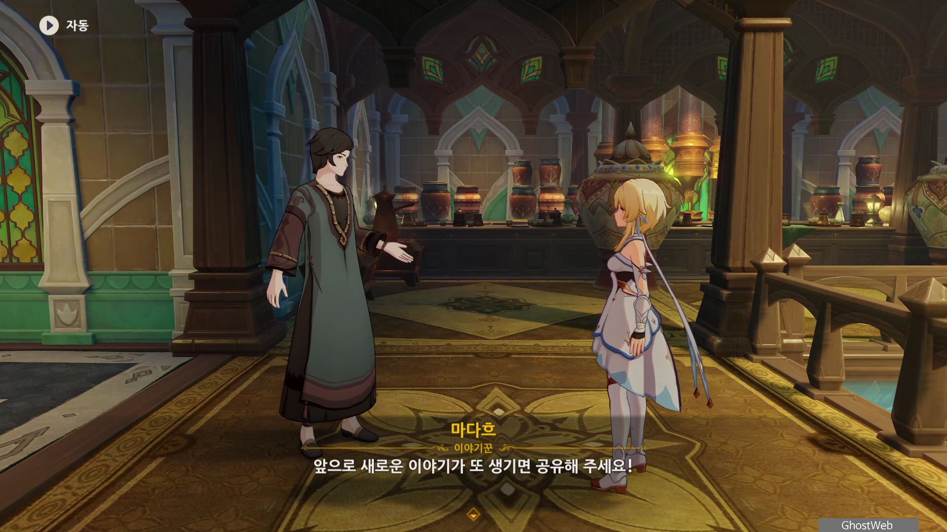 - 수메르 성에 있는 마다흐와 대화를 통해 이야기 소재를 알려주기