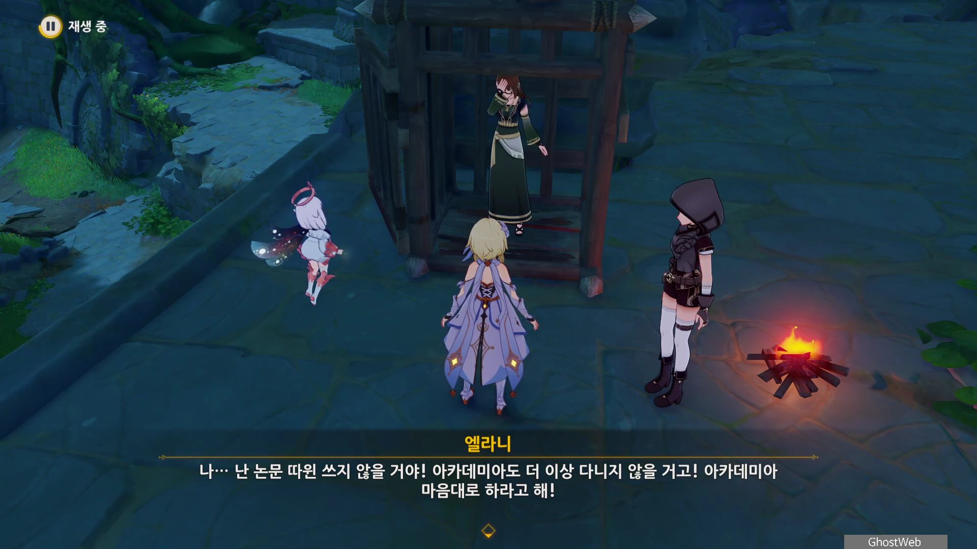 다흐리의 폐허 내부에 가면 엘라니와 나잠과의 대화를 통해 엘라니 논문 스트레스로 돌아가지 않는다며 닐루파 교수에게 메모를 전달해달라고 해요.