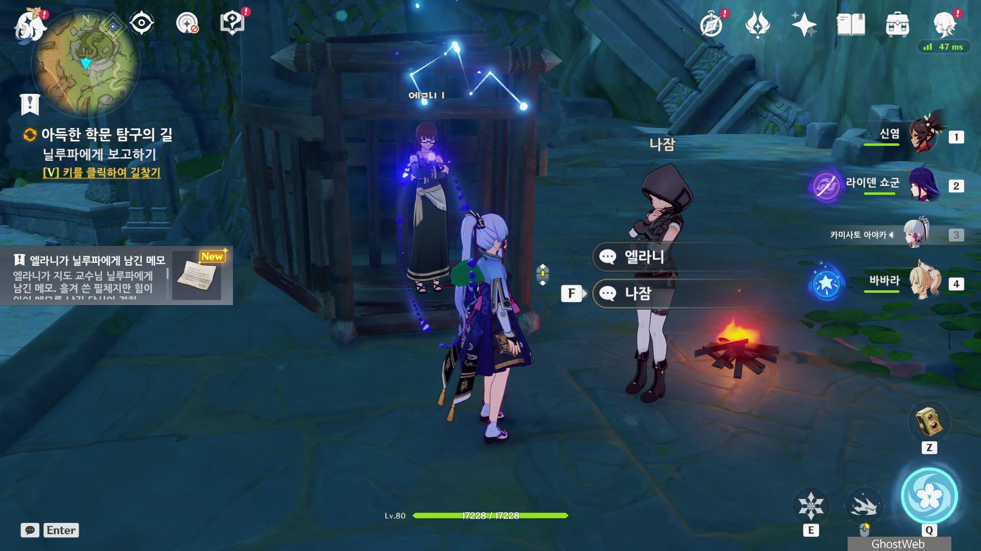 엘라니에게 받은 메모를 갖고 다시 수메르 성 아카데미아 앞에 있는 워프 포인트로 이동하여 닐루파에게 그동안 있었던 일을 설명해주고, 엘라니의 메모를 전달해주면 임무를 완료할 수 있어요.