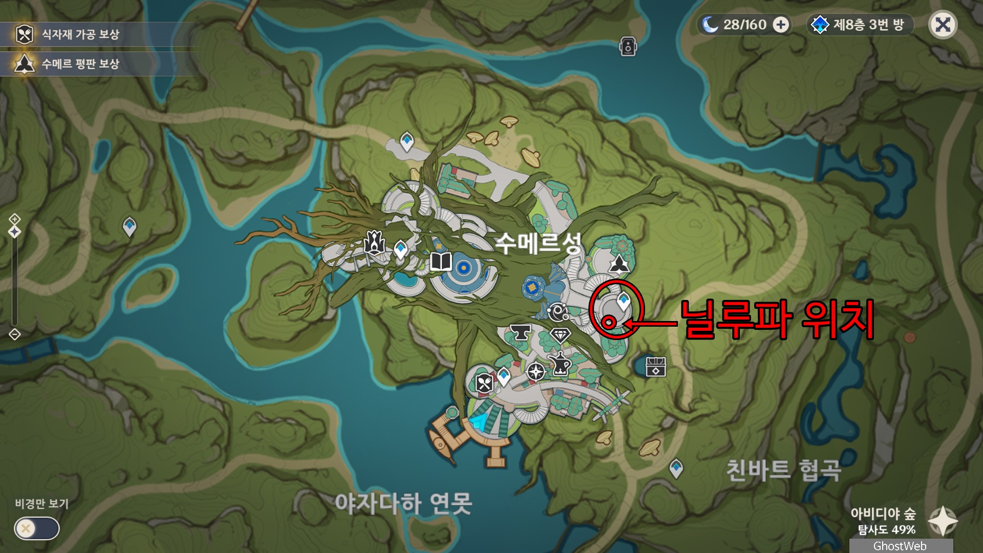 | [원신] 수메르 - 보물상자 위치 정리 (풀 원소 기믹, 낡은 하프, 풀의 인장 공양 보상, 바나라나의 꿈 나무) (0) | 2022.09.14 |