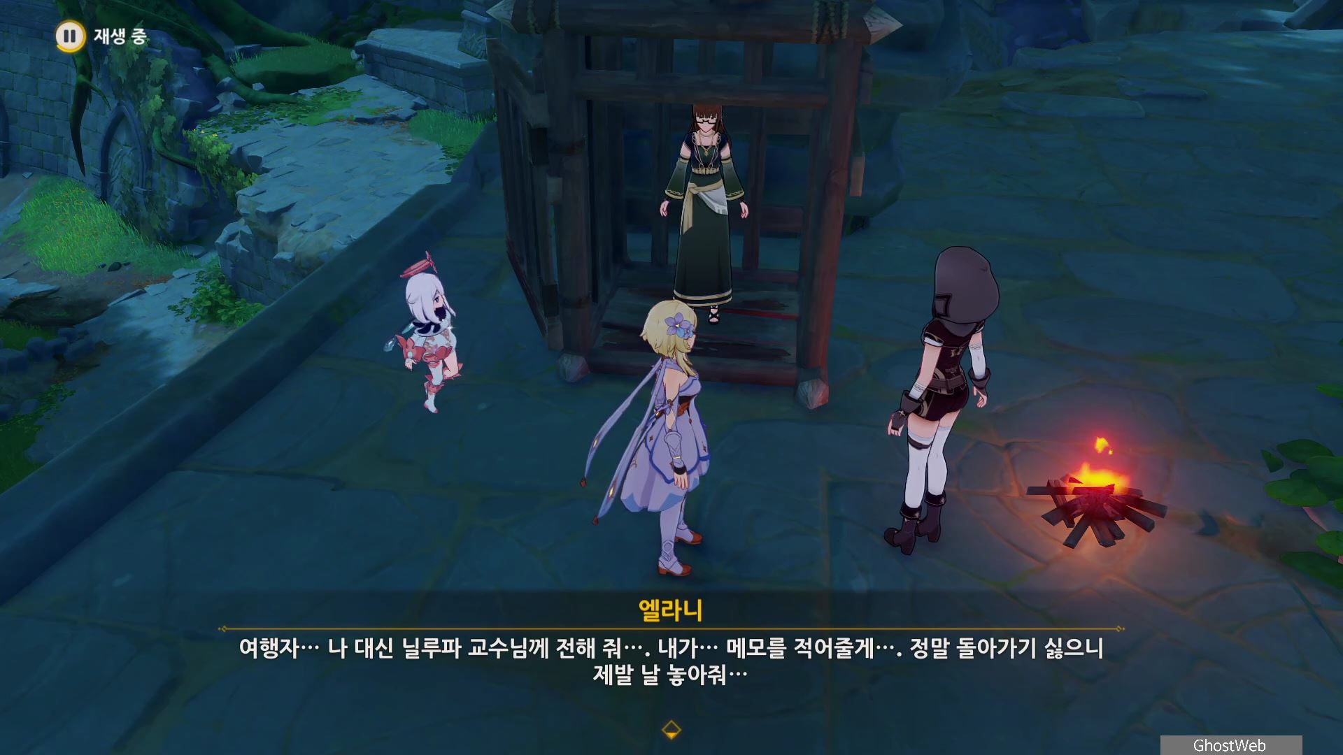 엘라니 노트가 발견되었던 다흐리의 폐허로 가면 근처에 있는 보물 사냥단을 처치하면 엘라니가 자진하여 보물 사냥단 야영지로 들어가 가둬달라고 했다는 이야기를 듣고 설득하기 위해 다시 엘나리가 있는 곳으로 떠나요.