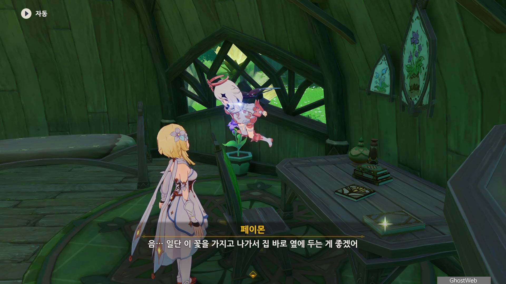 간다르바 성곽 한 편에 있는 콜레이 방으로가서 책상 위에 있는 수첩을 읽고 옆에 있는 화분을 밖으로 옮기세요.