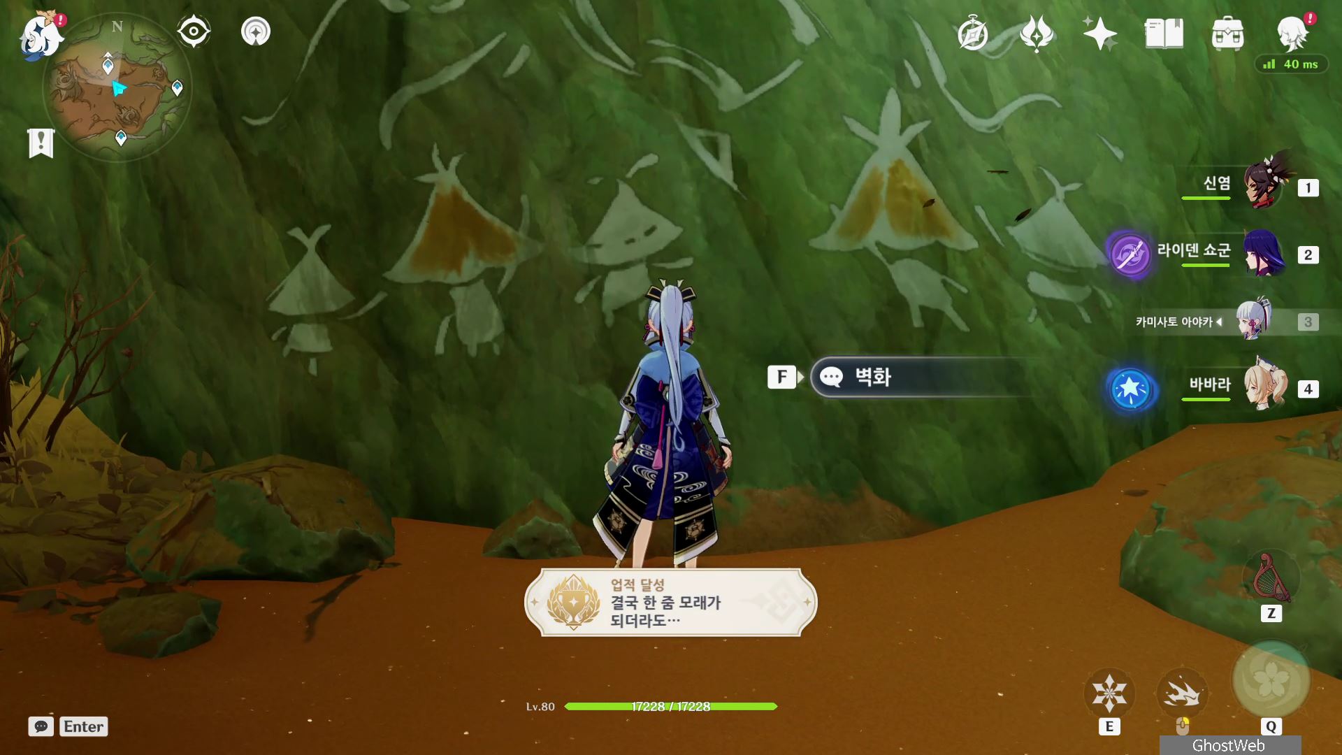 과거의 바나라나(수메스 성 기준 9시 방향) 기준 5시 방향에 있는 위프 포인트에서 뒤로 이동(모래 속의 고향)하거나, 가디언하고 싸우던 사막 공터 한 편에 있는 벽화에 다가가면 <결국 한 줌 모래가 되더라도> 업적을 달성할 수 있어요.
