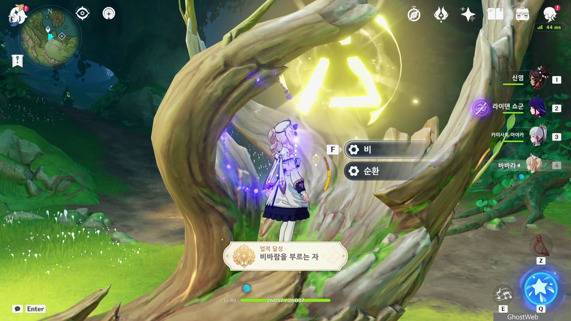 지도에서 수천삼림 글자 기준 6시 방향 지하에 있는 워프 포인트(수메르 아샤반의 땅 / 또는 날씨의 좌표 비경)으로 이동하여 사진에서 보이는 장치에 다가가 낡은 하프를 연주하여 장치를 활성화하고 상호 작용을 통해 날씨를 바꾸면 <비바람을 부르는 자> 업적을 달성할 수 있어요.