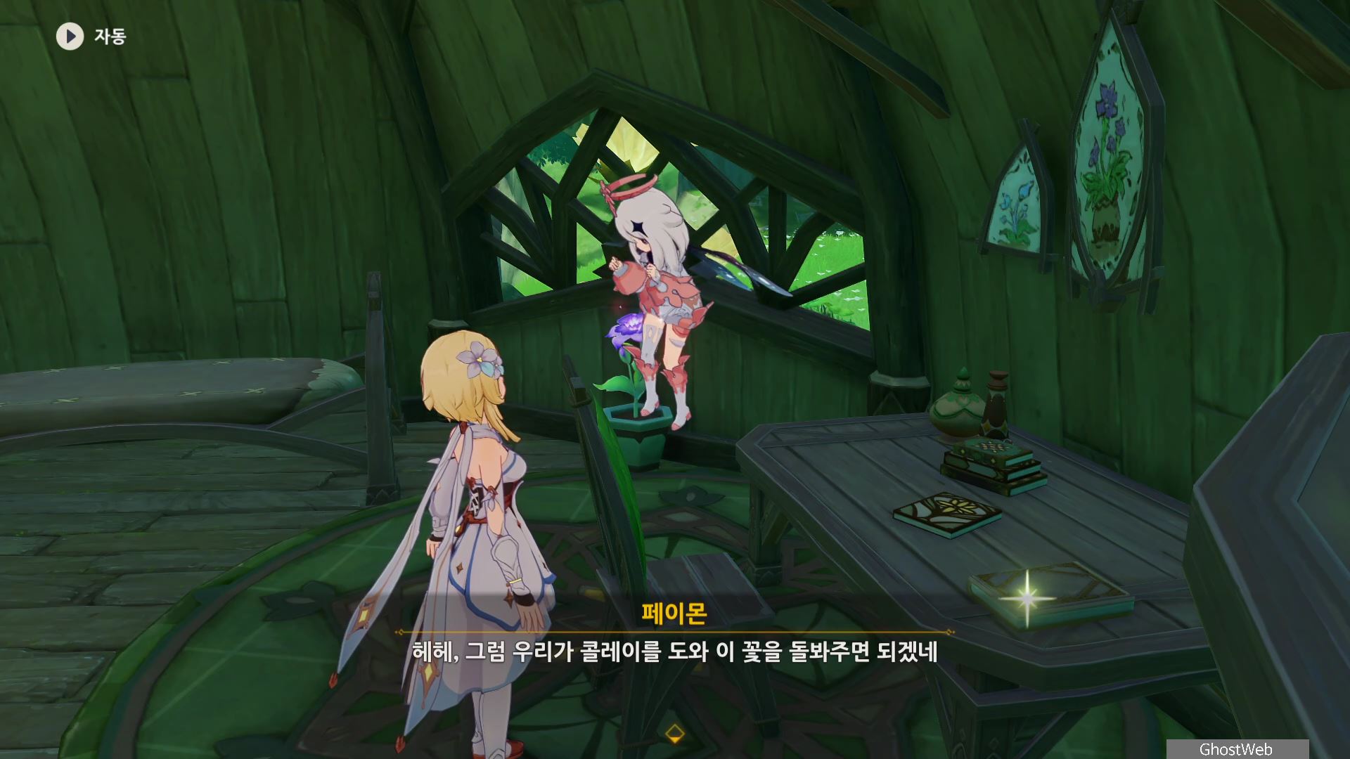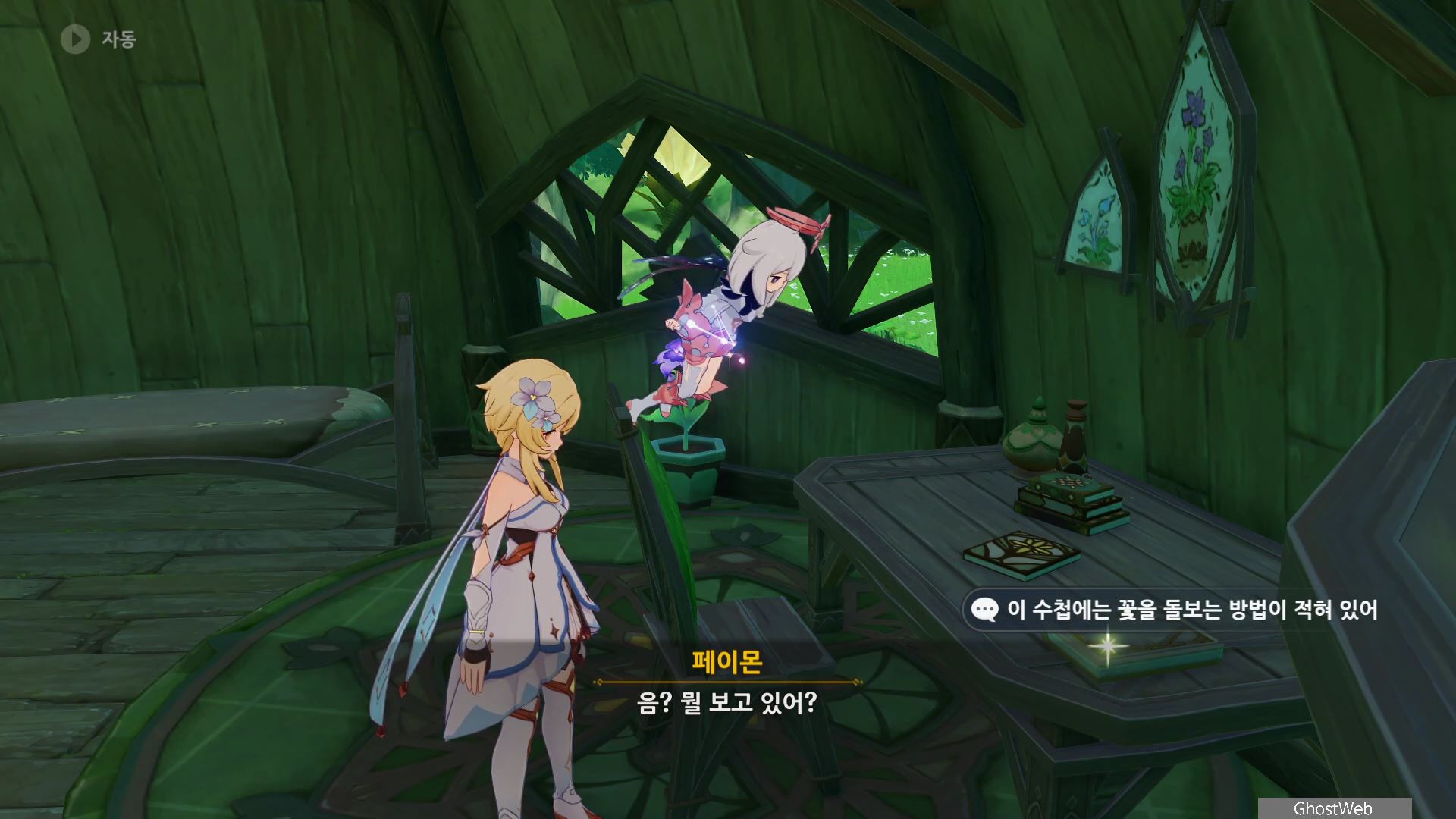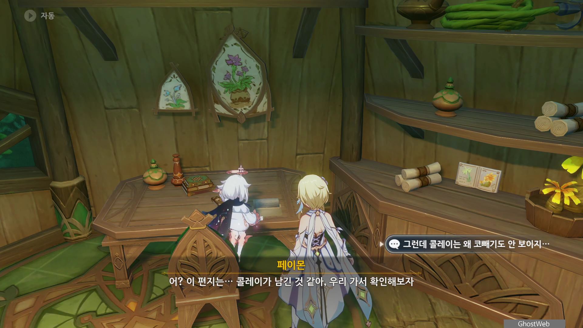 지도에서 간다르바 성곽 글자 아래 위치한 콜레이 방에서 들어가 책상에 있는 수첩을 읽어보면 꽃을 돌보는 방법에 <개방된 장소에 두고 햇볕을 많이 쬐게 해야 한다...>라는데 콜레이가 바뻐서 미처 꽃을 옮기지 못한 것을 보고 여행자가 대신 방 안에 있는 화분을 운반하여 집 앞에 놓고 콜레이에게 편지를 써서 이를 알려주기로 해요.