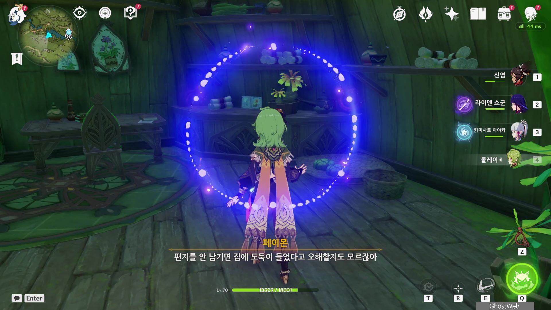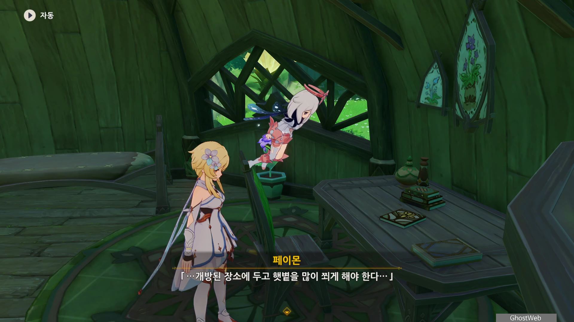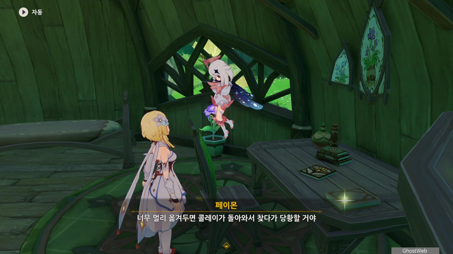 지도에서 간다르바 성곽 글자 아래 위치한 콜레이 방에서 들어가 책상에 있는 수첩을 읽어보면 꽃을 돌보는 방법에 <개방된 장소에 두고 햇볕을 많이 쬐게 해야 한다...>라는데 콜레이가 바뻐서 미처 꽃을 옮기지 못한 것을 보고 여행자가 대신 방 안에 있는 화분을 운반하여 집 앞에 놓고 콜레이에게 편지를 써서 이를 알려주기로 해요.