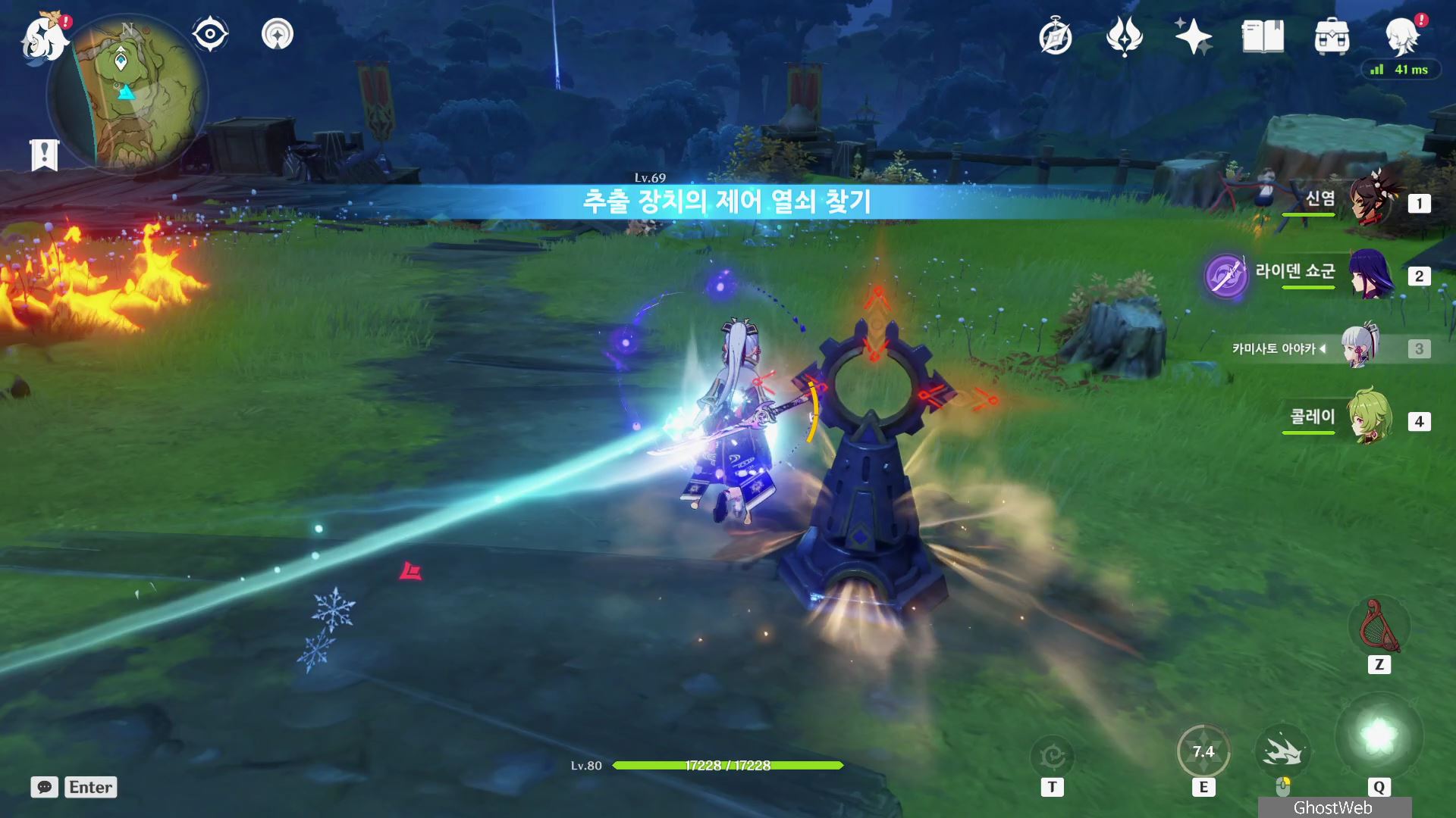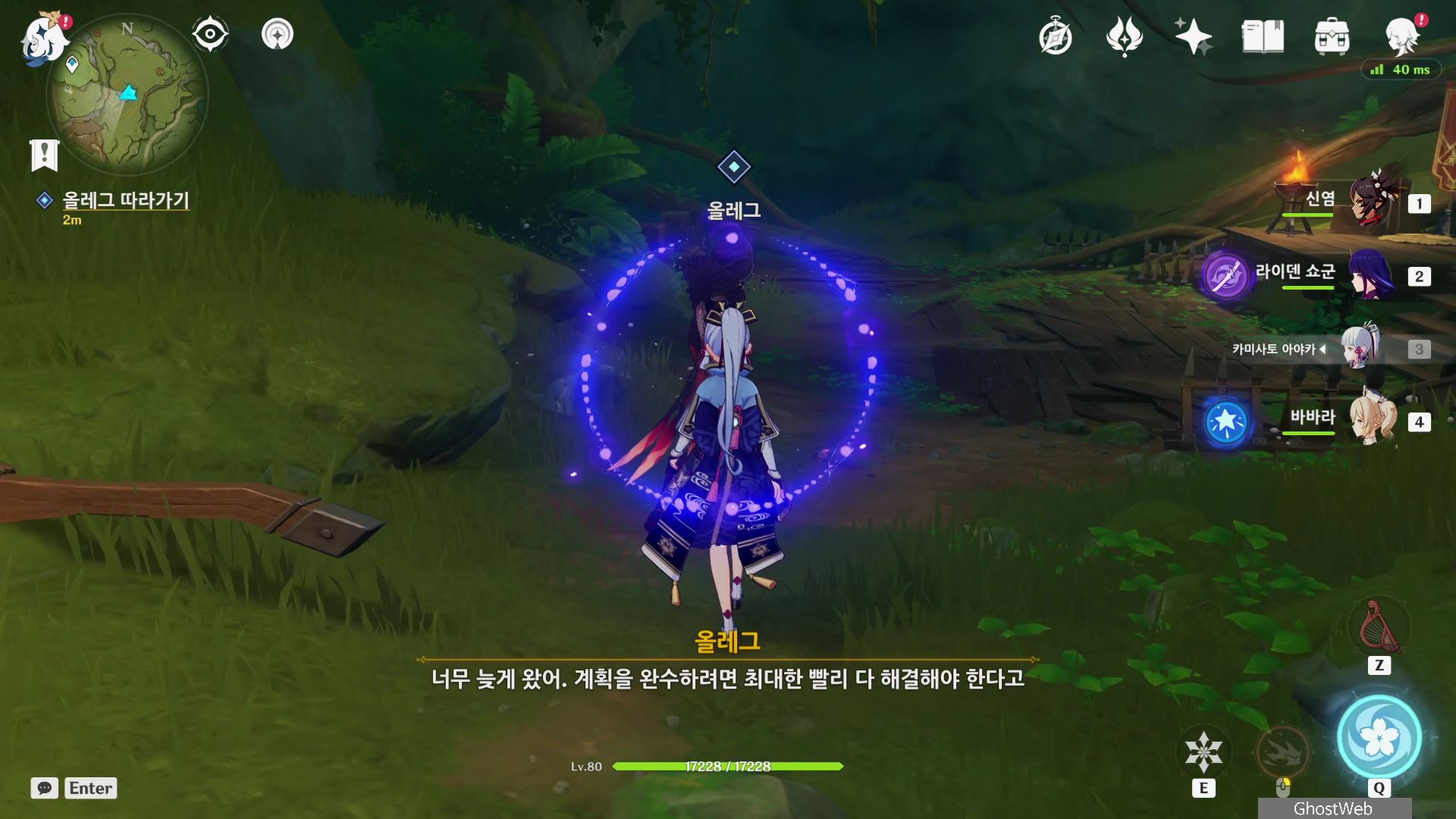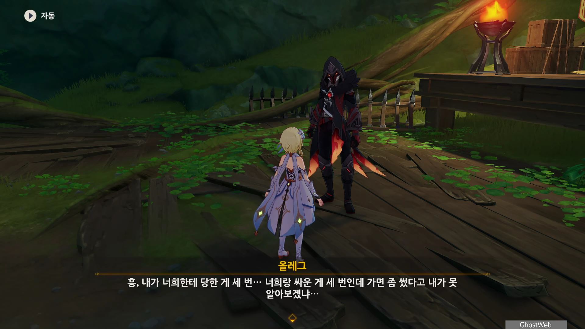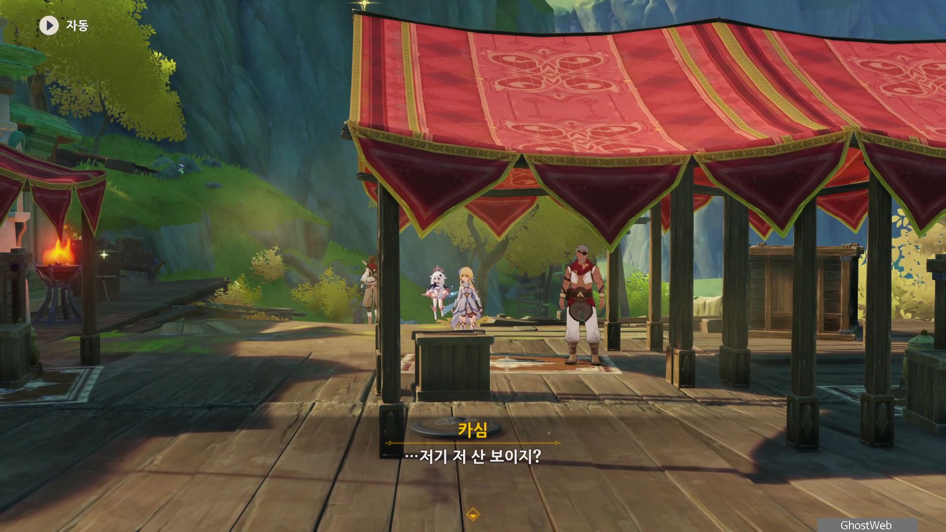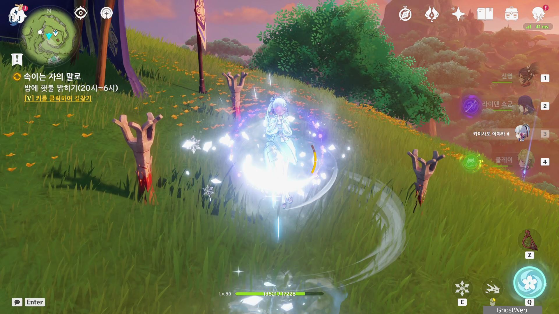 우인단 비밀 연락 지침서에서 말한 수선산림으로 향해 시간을 20시~6시로 변경한 후 텐트 주변에 있는 횃불을 불 원소 캐릭터(엠버)의 원소 공격을 통해 불을 붙이면 반대편 산에서 불이 반짝이는데, 그 곳으로 향하세요.