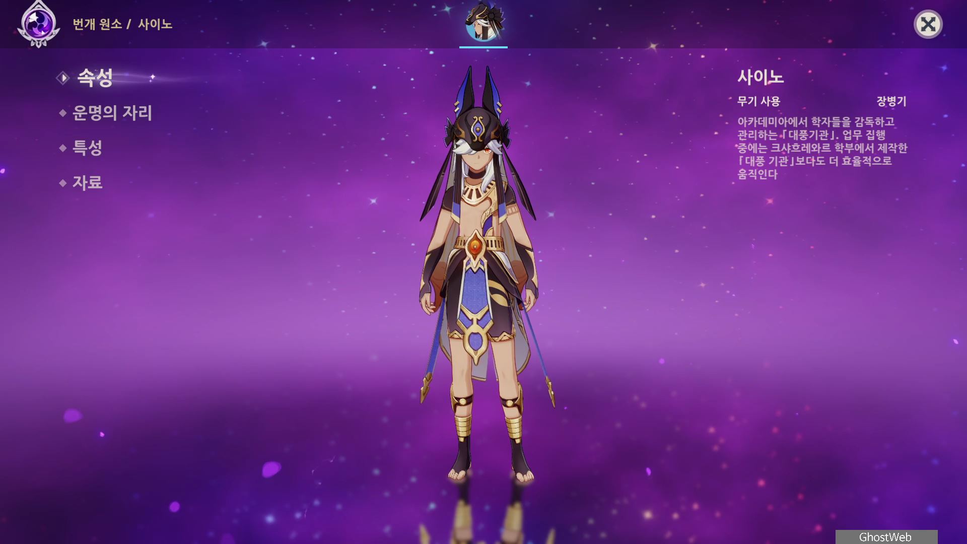 이번에는 수메르 사막 지역에 오픈되면서 나온 5성 번개 원소 캐릭터인 사이노에 대해서 정리해보도록 할게요.
