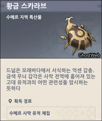 - 황금 스카라브 (수메르 사막 지역에서 채집)