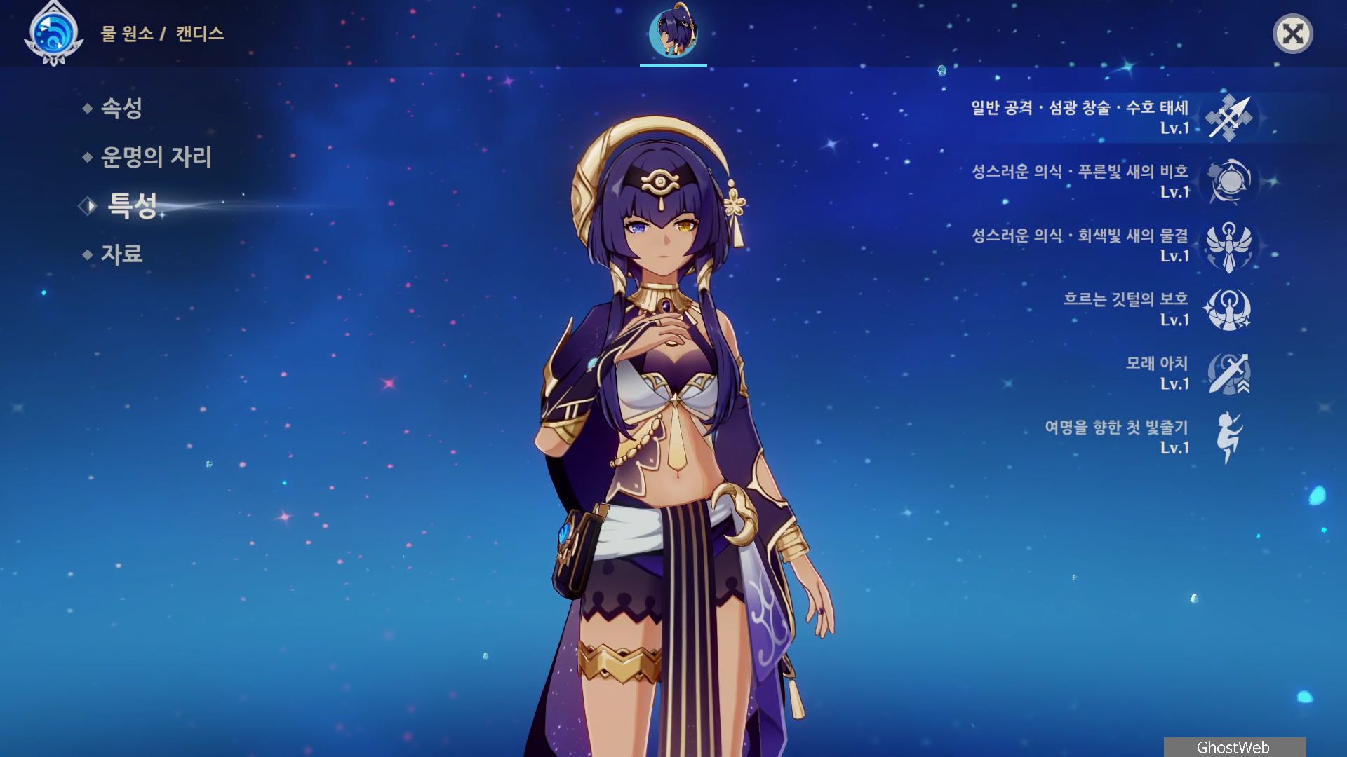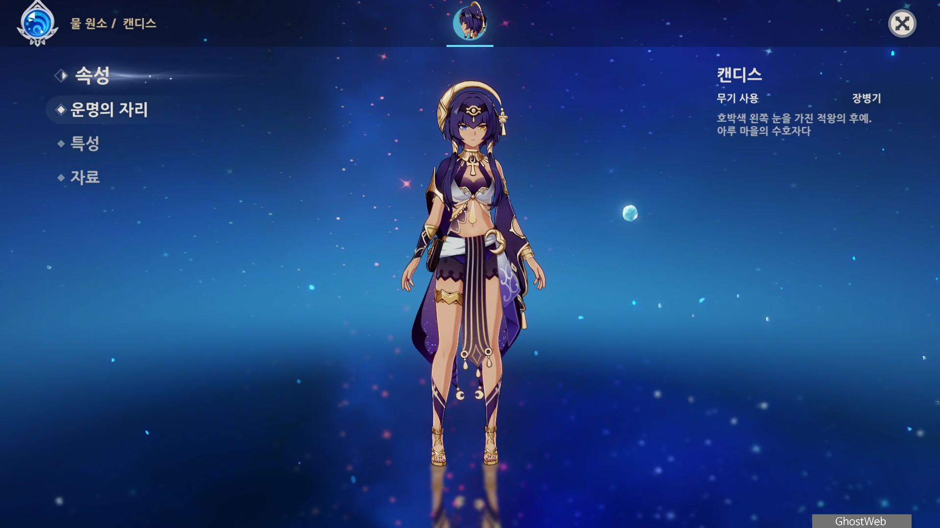이번에는 수메르 사막 지역에 오픈되면서 나온 4성 물 원소 캐릭터인 캔디스에 대해서 정리해보도록 할게요.