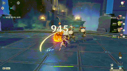 · 캐릭터 등장 시, 물결 충격을 발동해 주변 적에게 물 원소 피해를 준다.