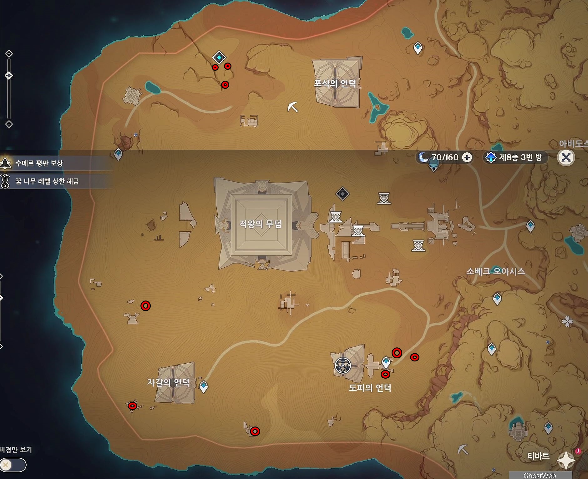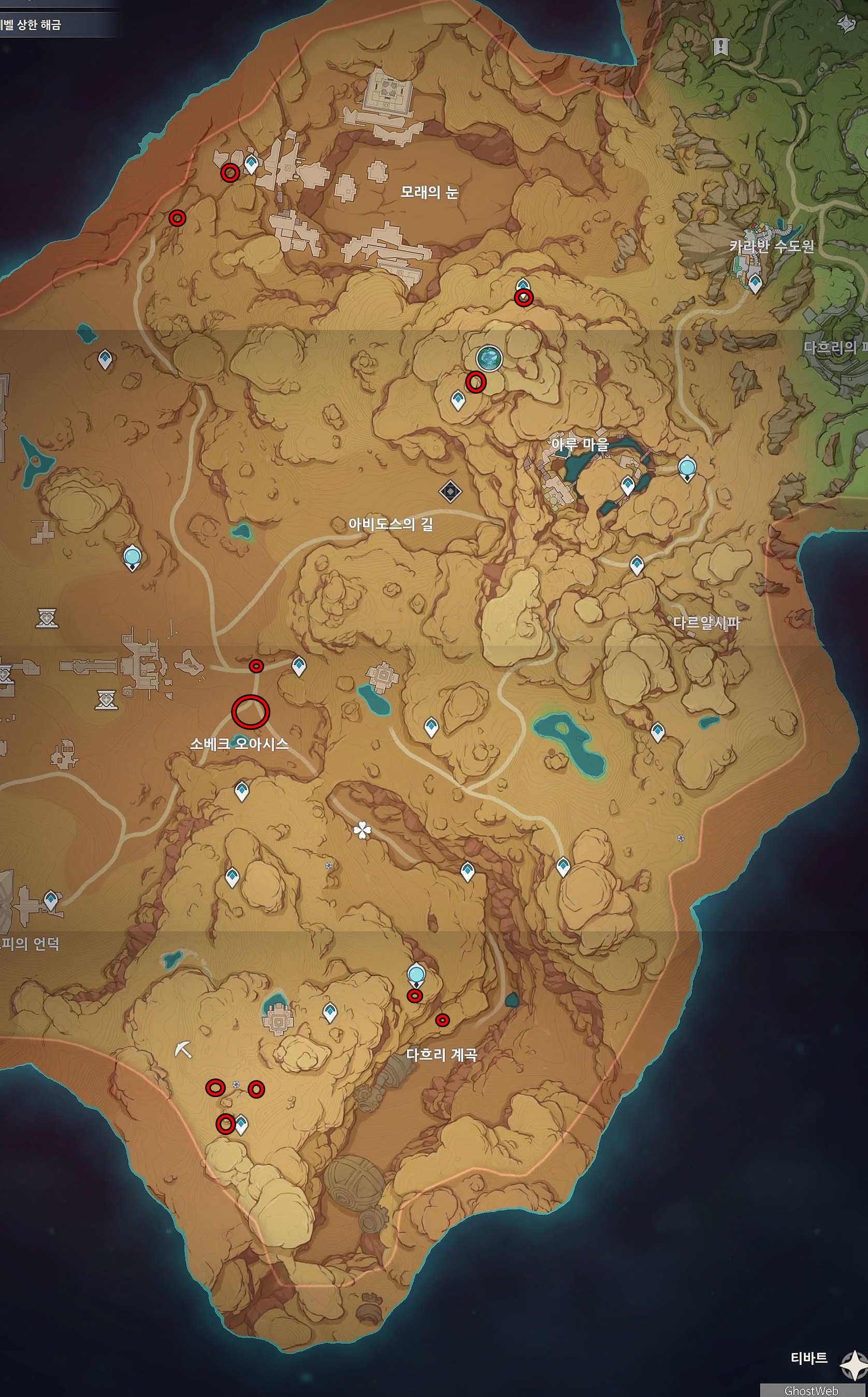 이번에는 사이노 육성 소재이자 수메르 사막 지역에서 파밍할 수 있는 <황금 스카라브>에 위치를 정리해보도록 할게요.