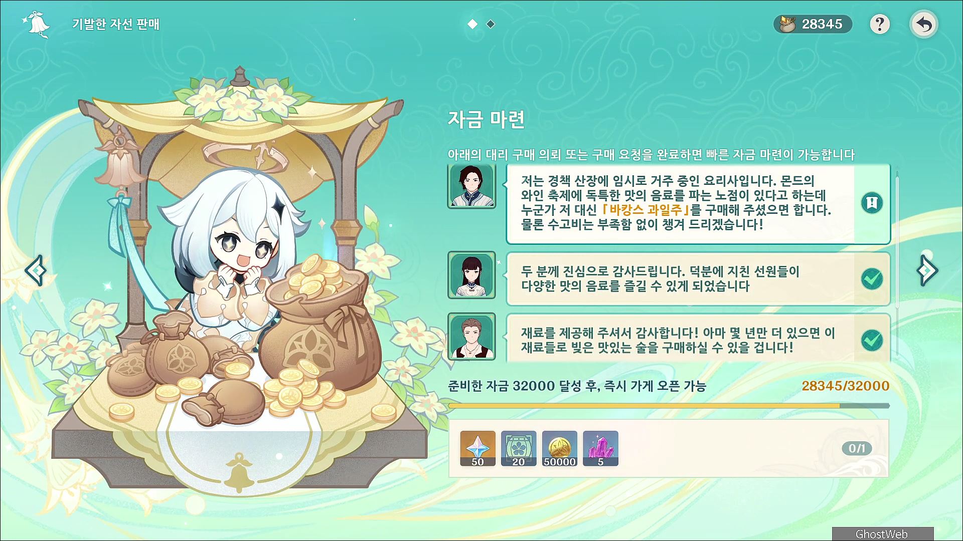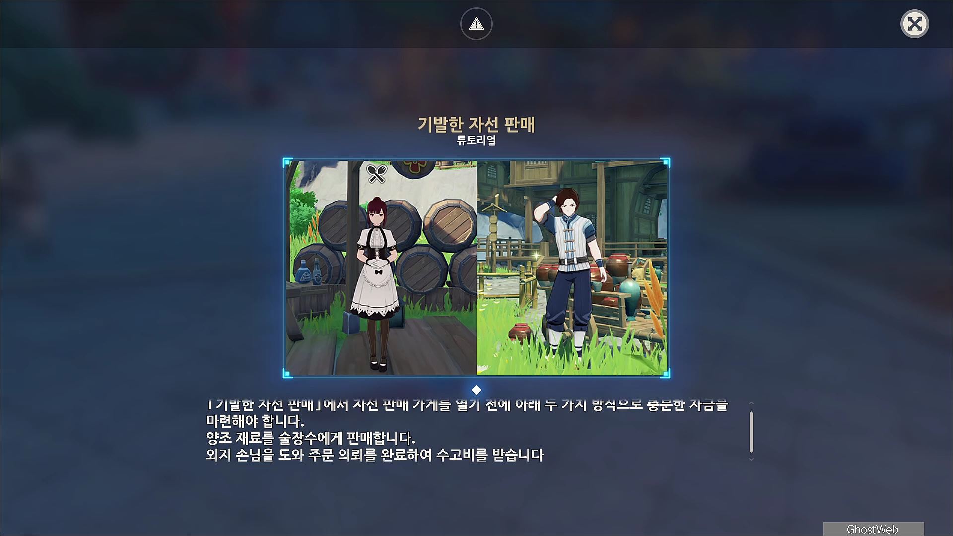 - 아이템을 등을 팔아 자금을 모은 후 가게 운영