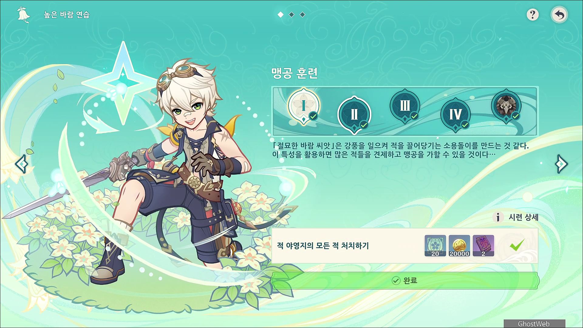 - 바람 씨앗 3개를 획득한 후, 해당 지역 등을 이동하며 적들을 처치