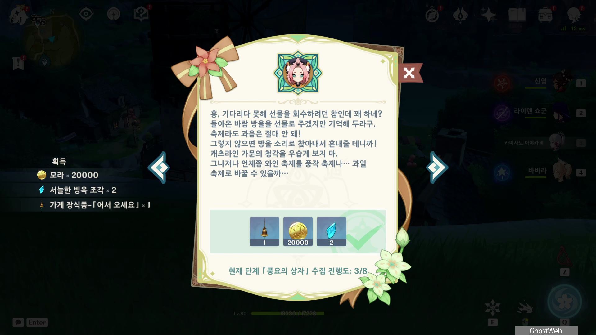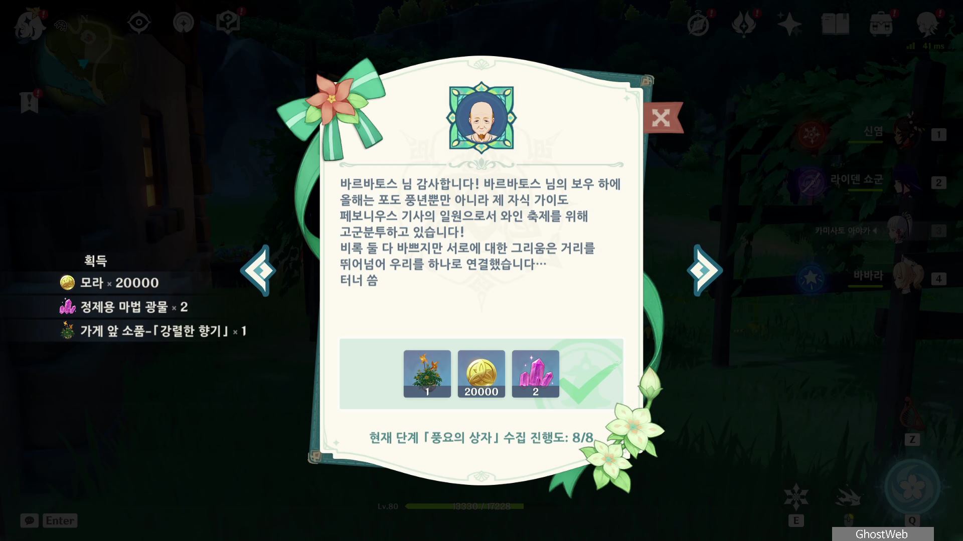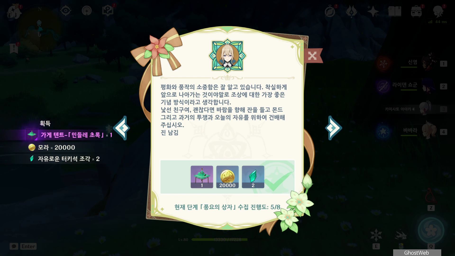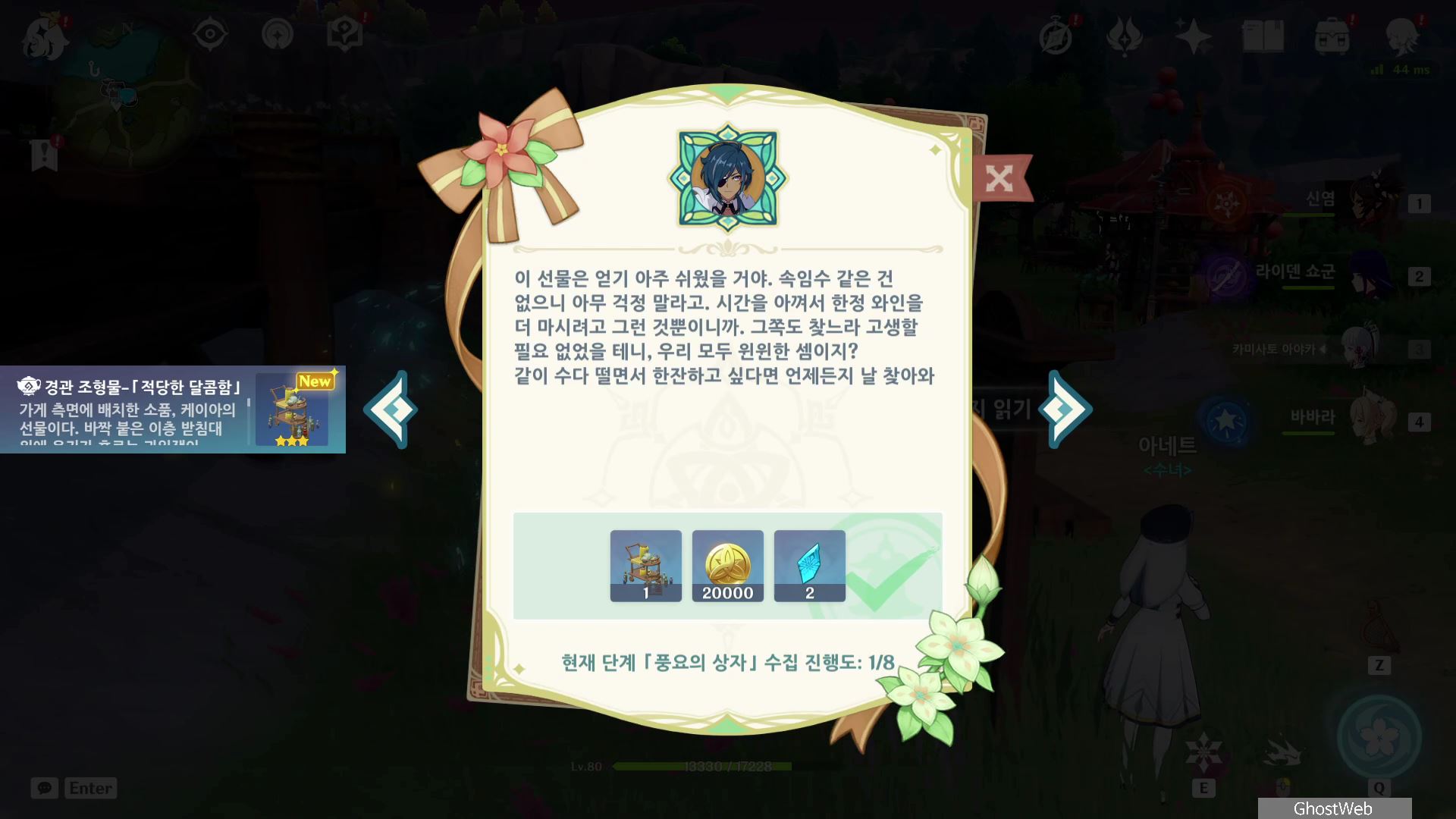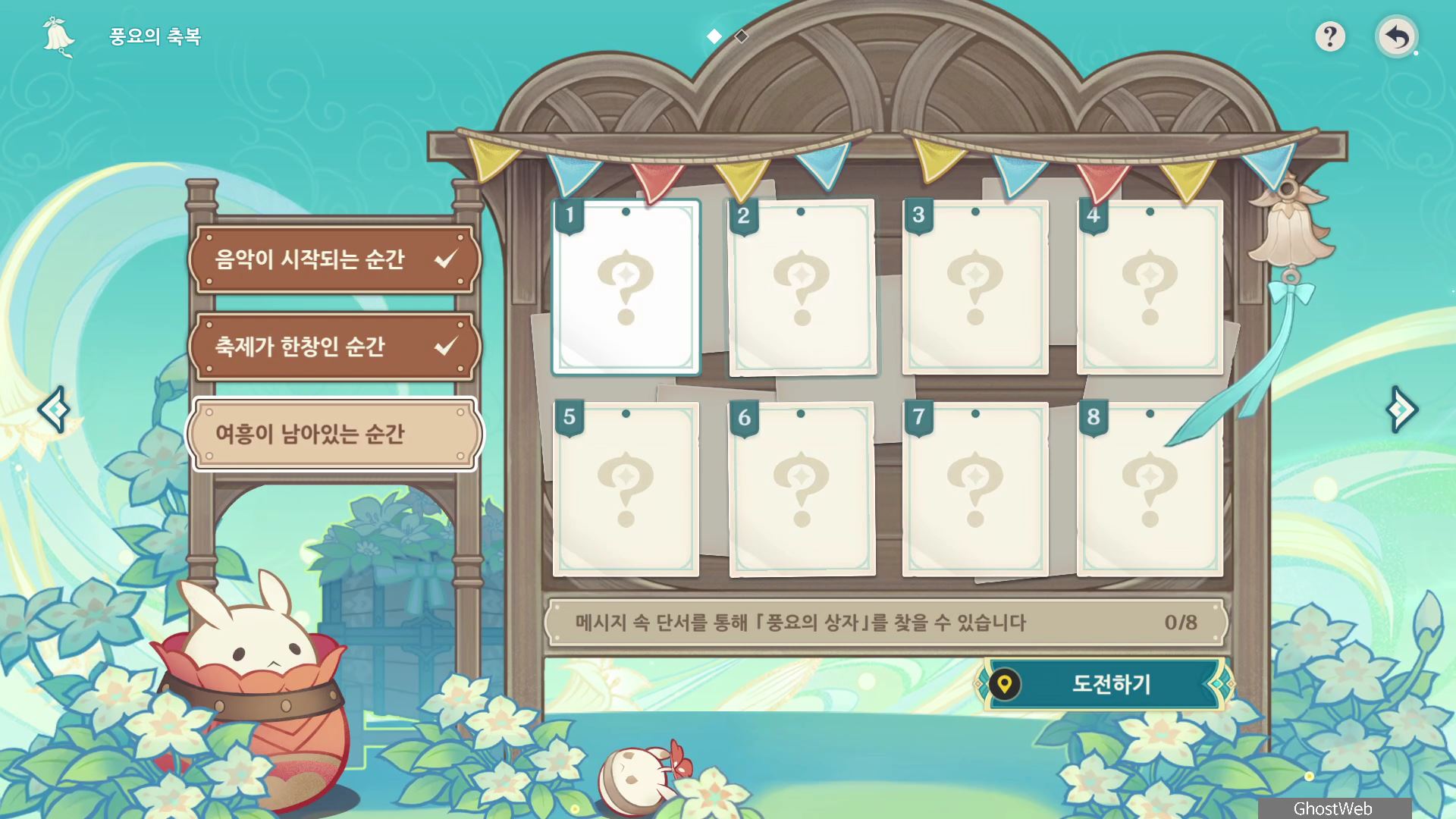 이번에는 잔 속에서 울리는 노래 이벤트 중 <풍요의 상자 - 여흥이 남아있는 순간>의 보물 상자 위치에 대해서 정리해보도록 할게요.