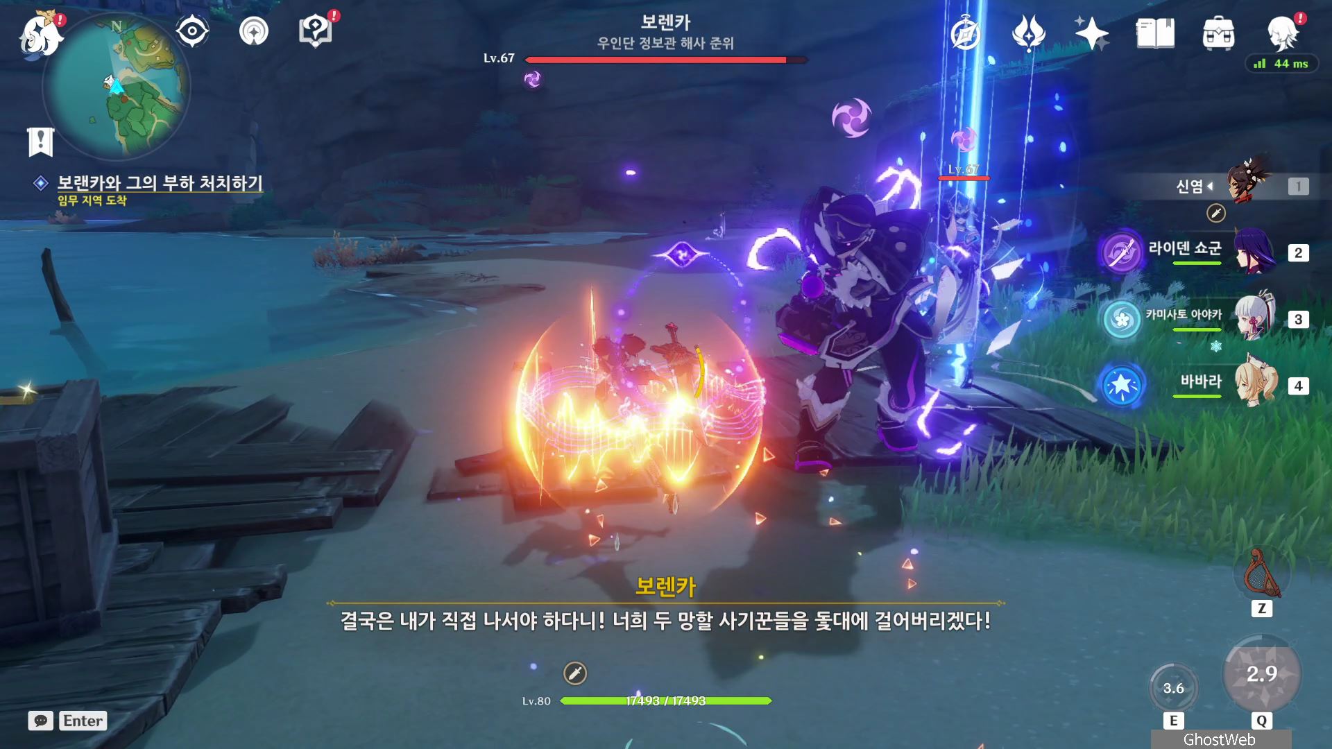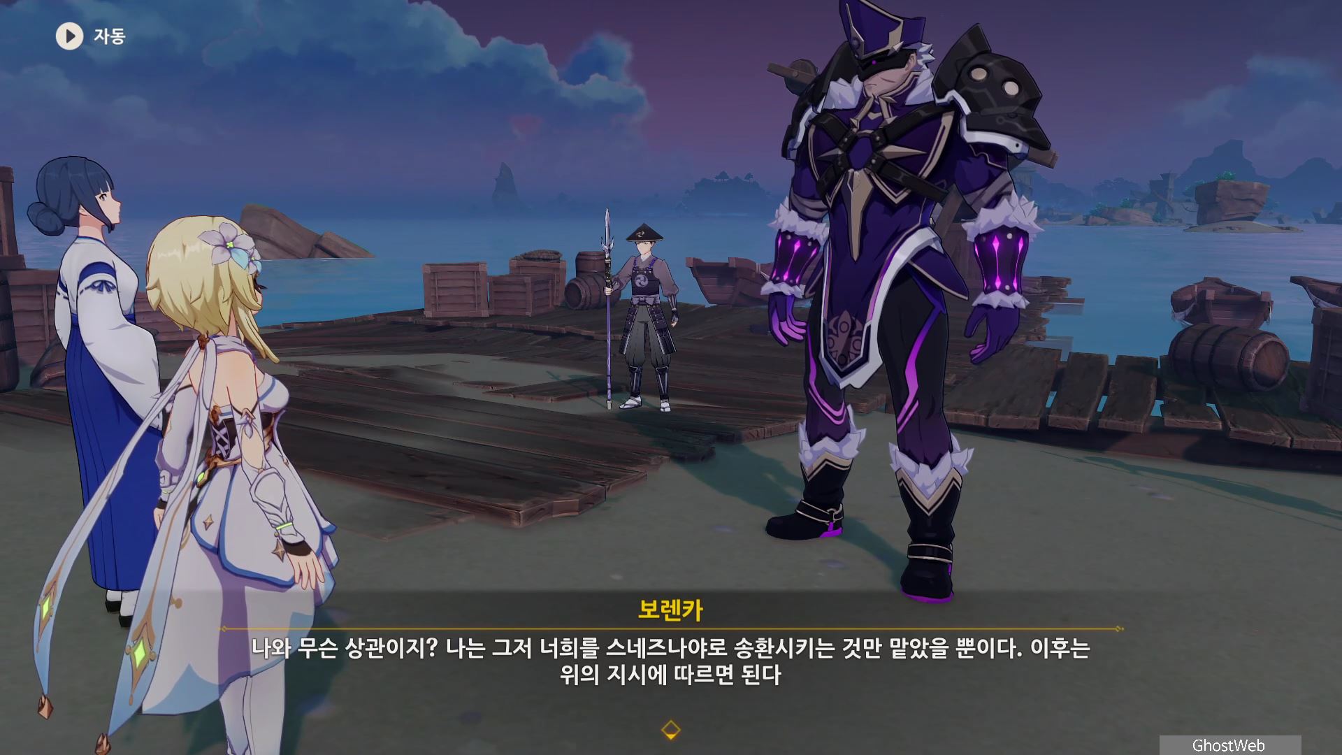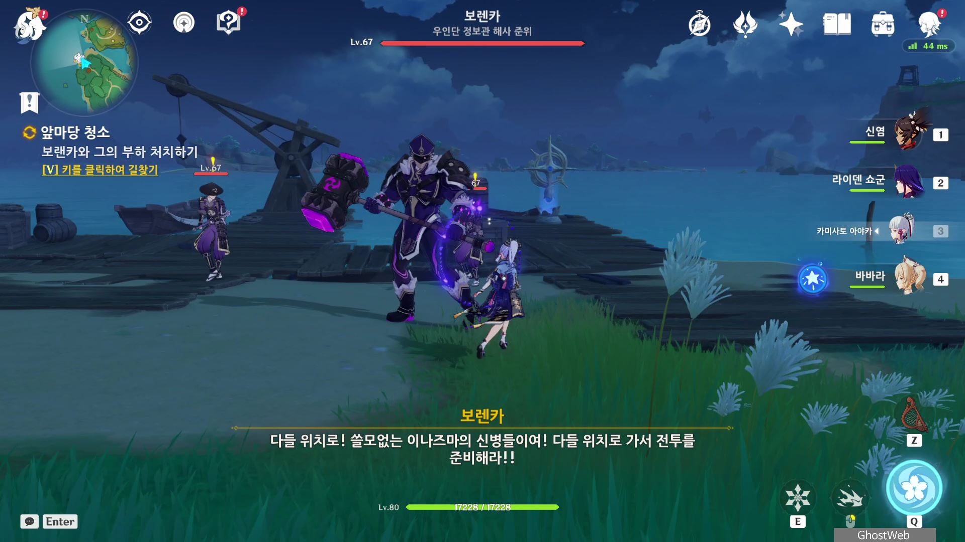 <글씨가 반듯한 쪽지>를 다읽으면 야시오리섬 서쪽 항구에 정보관이 있으며, 접선 암호는 '웃겨 죽겠네'라는 사실을 알고 그 곳에 있는 우인단 보렌카(우인단 정보관 해사 준위)와 무사들을 처치하고 보랜카의 지령을 읽어보면 신병 모집에 자세한 내막을 알 수 있어요.