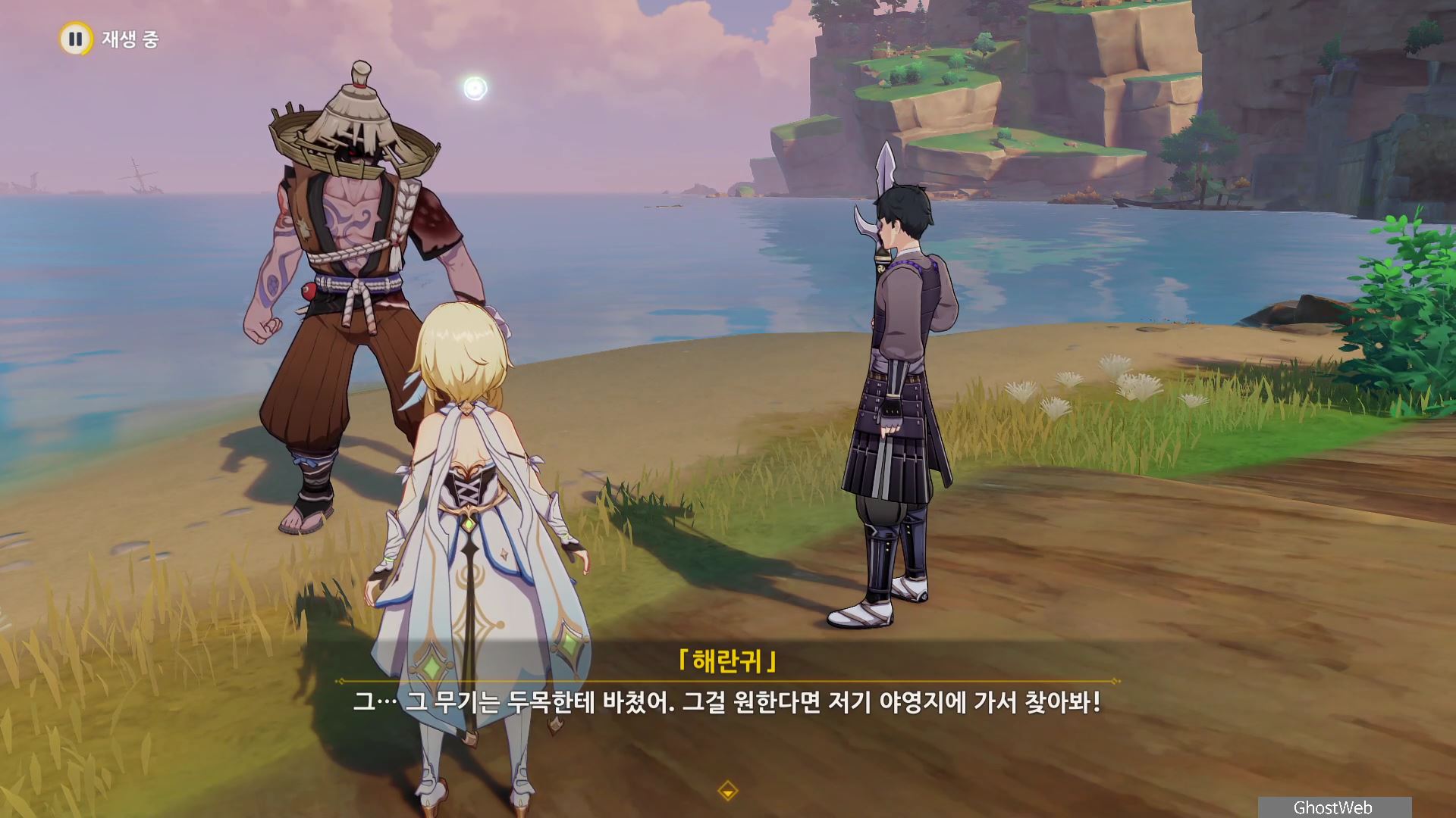 나루카미섬 북쪽에 있는 <황해> 워프 포인트로 이동하여 북쪽 바닷가에 있는 해란귀를 처치하면 저 번에 빼앗긴 무기를 두목에게 바쳤다는 사실을 알 수 있어요.