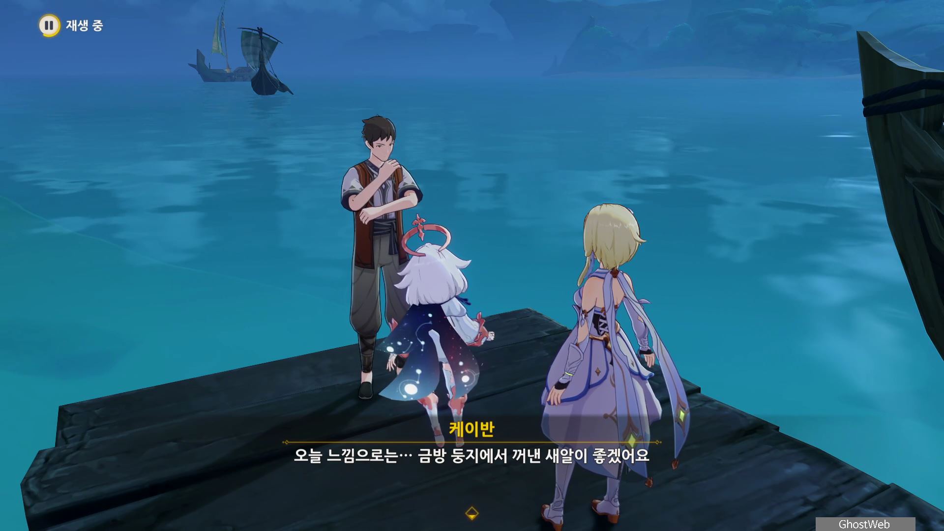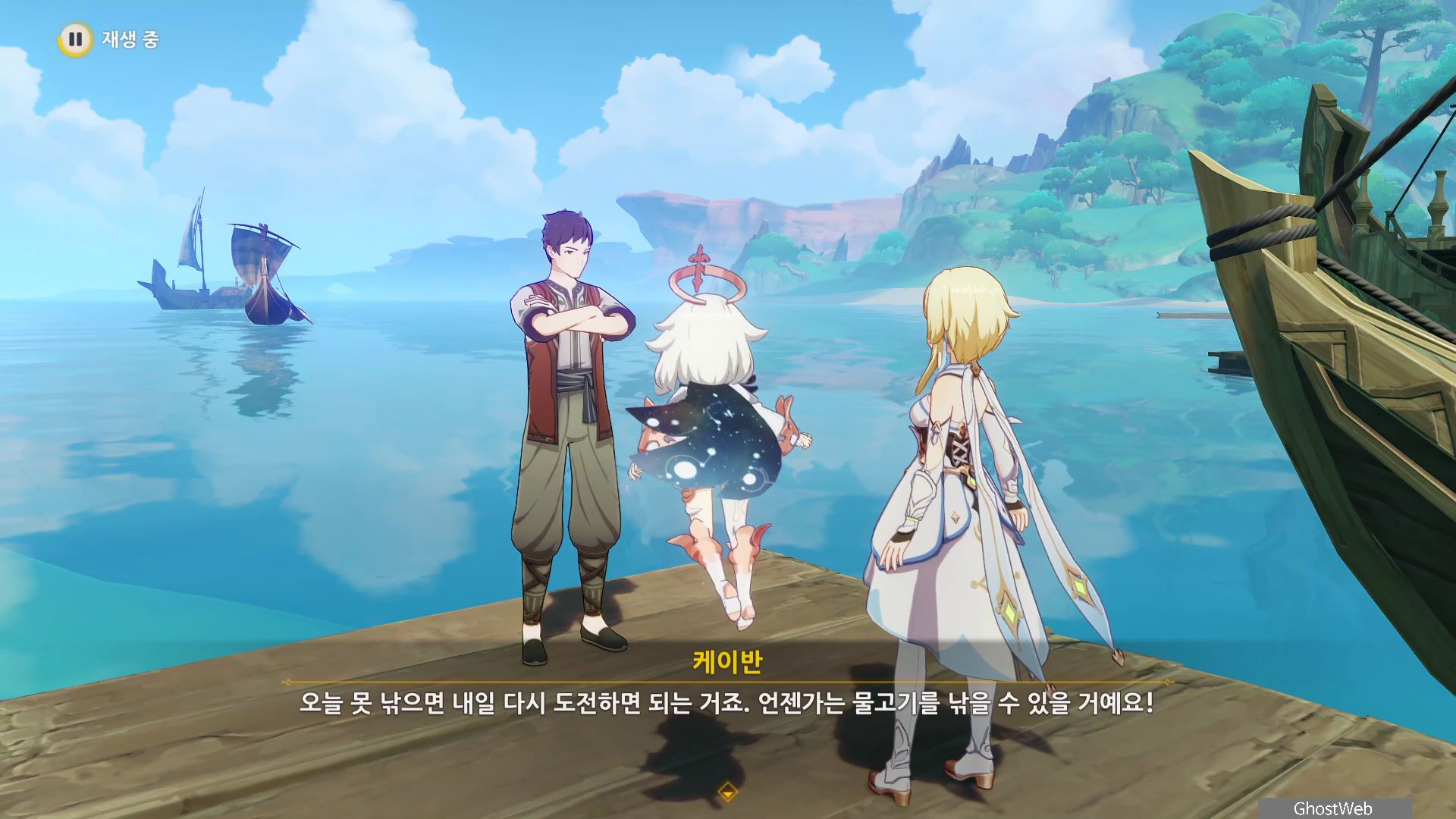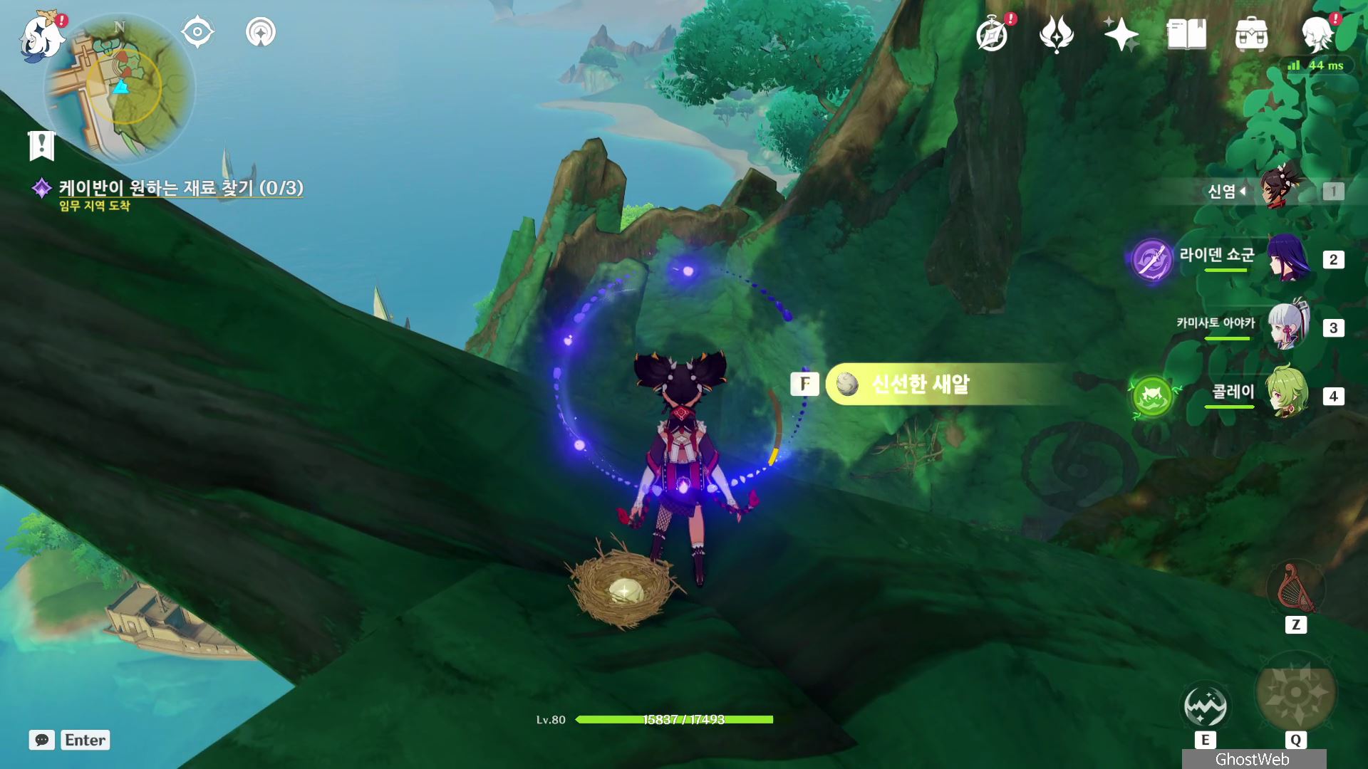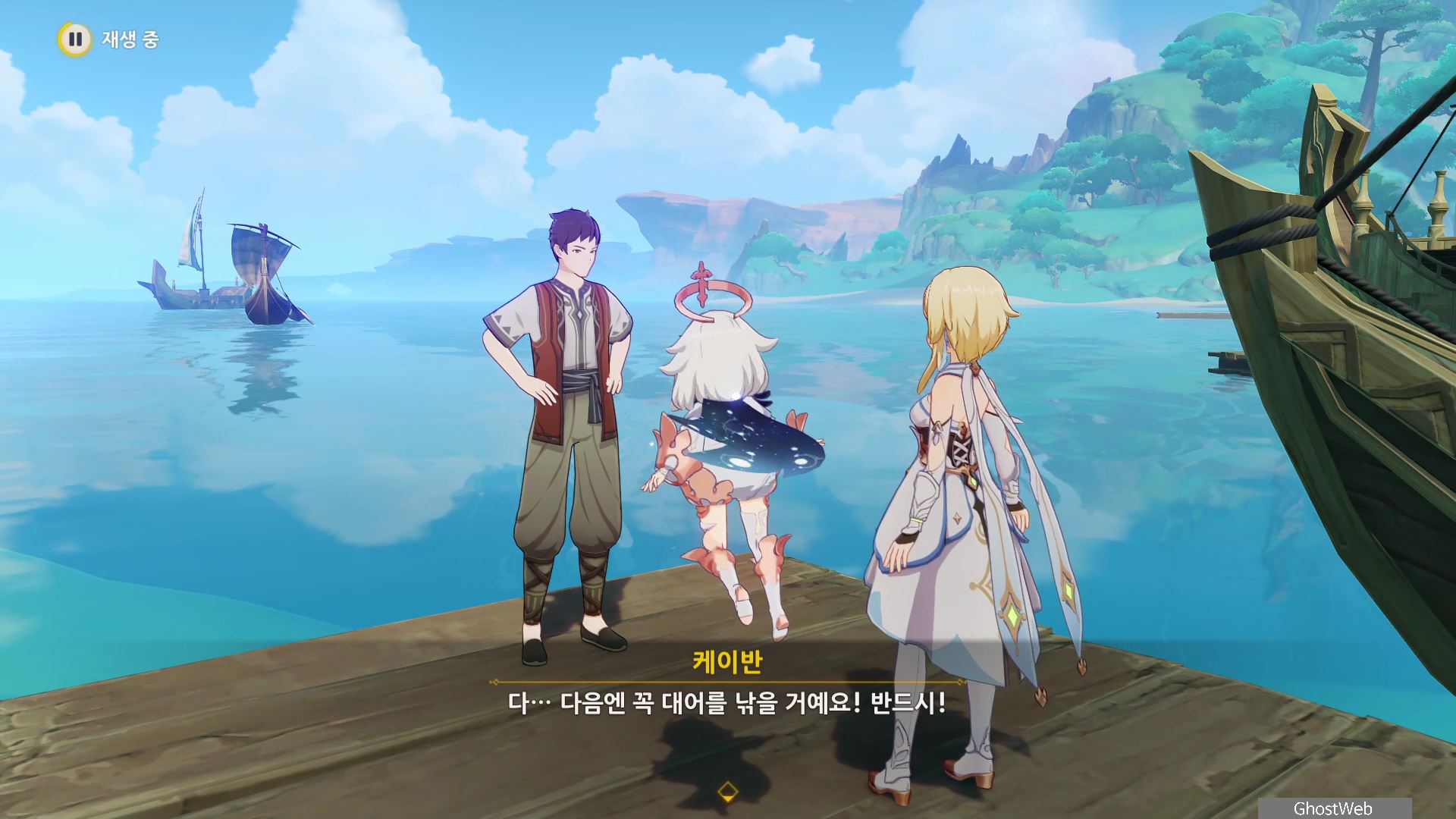 신선한 새알 3개를 획득하고 다시 오르모스 항구로 돌아가 케이반에게 3개의 재료를 제출하고 케이반이 낚시를 시작하지만 물고기가 아닌 축축하게 젖은 보따리 하나를 낚으며, 여행자와 대화를 끝으로 일일 임무가 종료돼요.