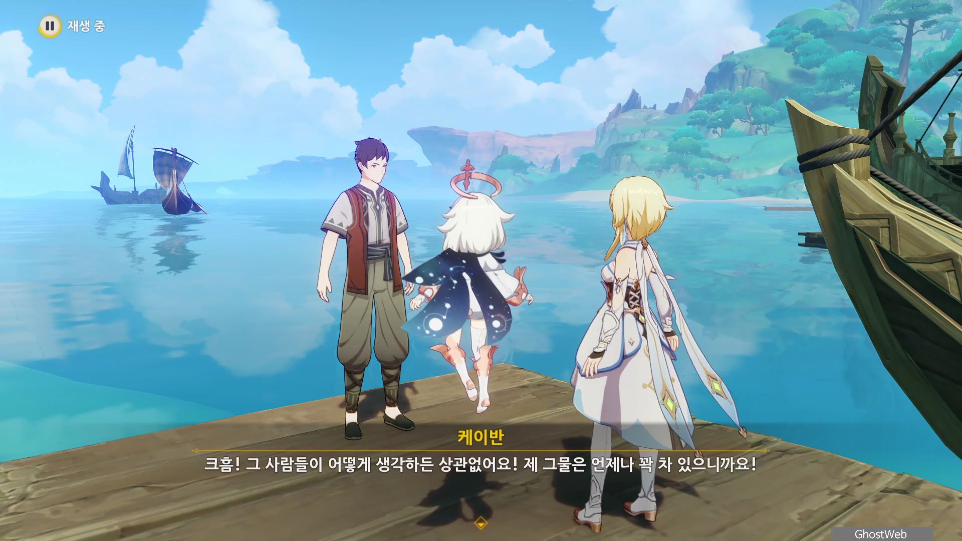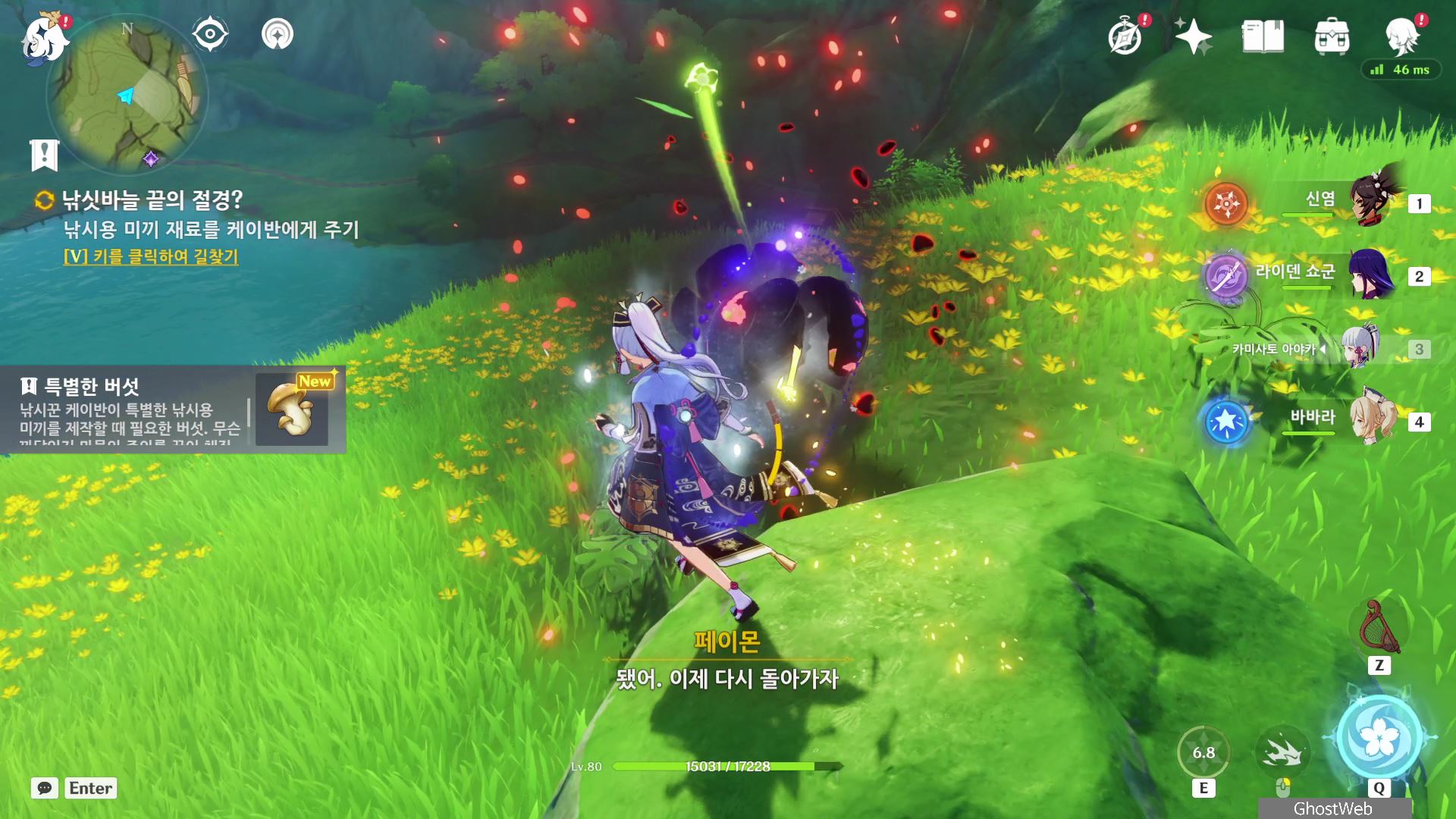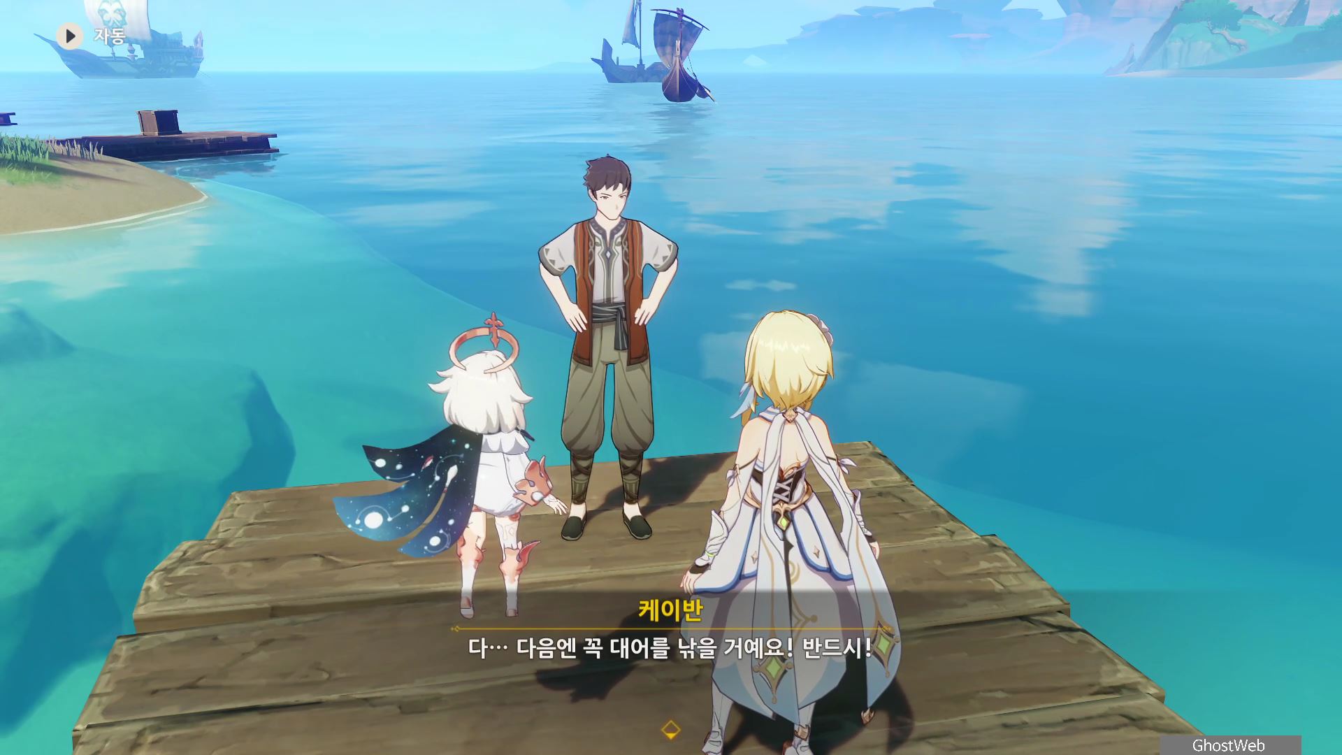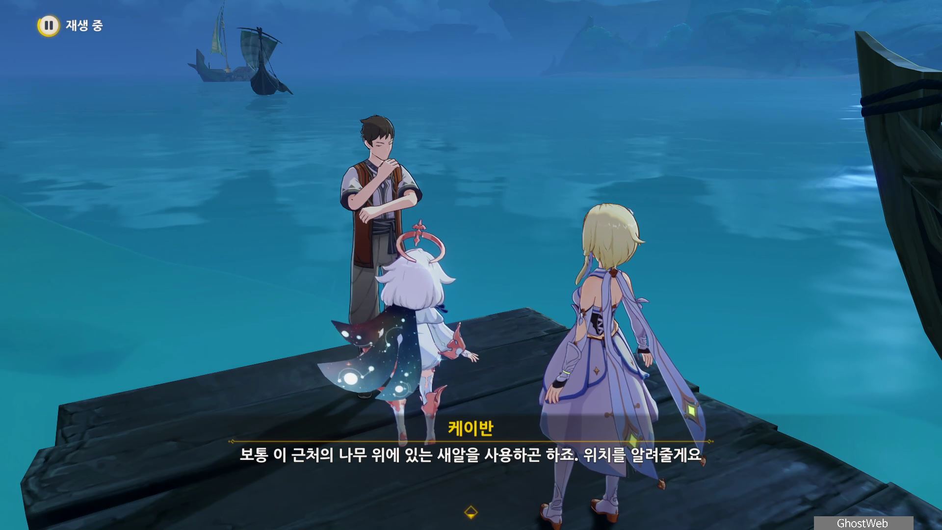 신선한 새알 3개를 획득하고 다시 오르모스 항구로 돌아가 케이반에게 3개의 재료를 제출하고 케이반이 낚시를 시작하지만 물고기가 아닌 축축하게 젖은 보따리 하나를 낚으며, 여행자와 대화를 끝으로 일일 임무가 종료돼요.