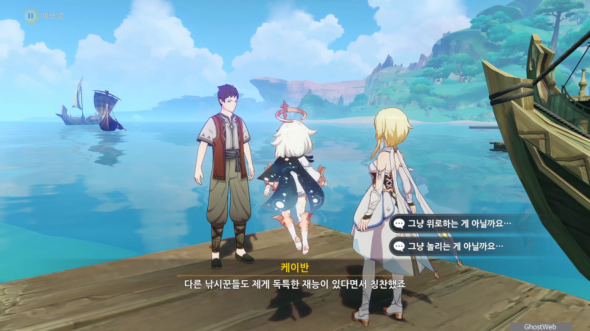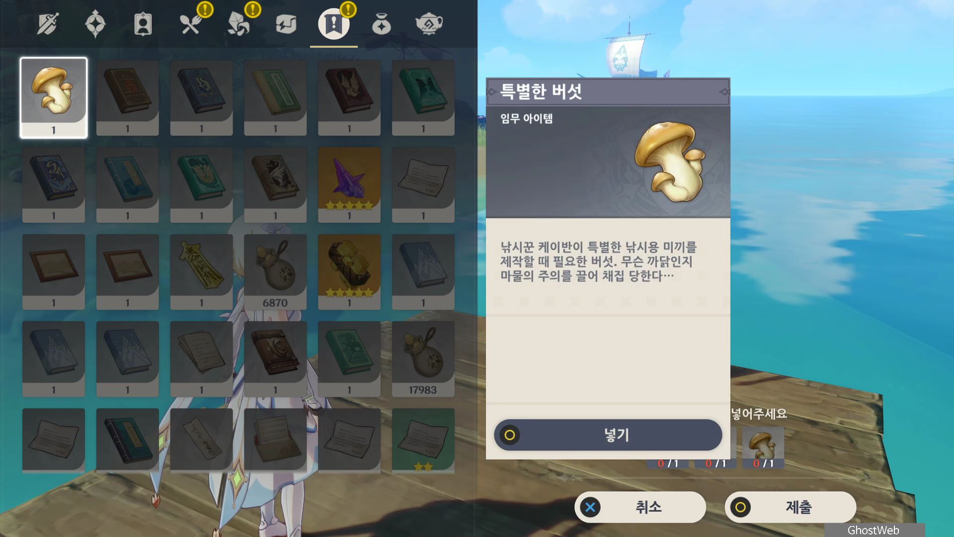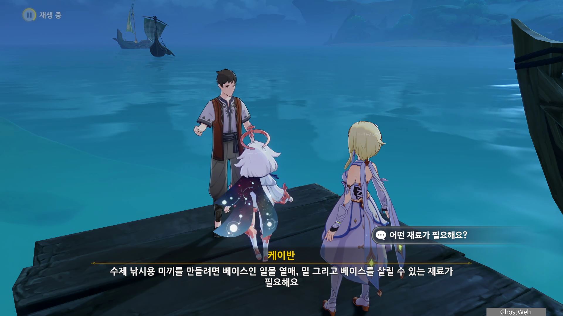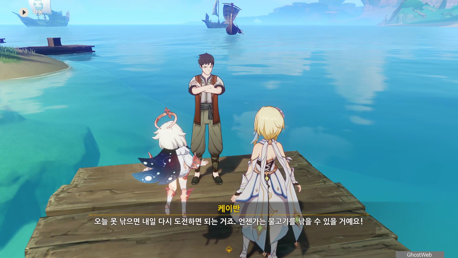 이번에도 축축하게 젖은 보따리 하나를 낚으고 여행자와 대화를 끝으로 일일 임무가 종료돼요.