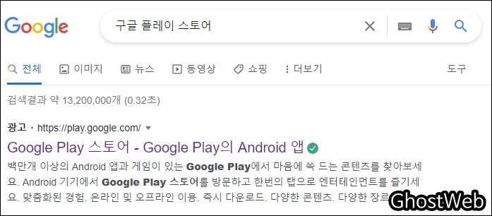우선 검색 창에서 <구글 플레이 스토어>를 검색하거나 아래의 주소로 구글 플레이 스토어 홈페이지로 이동하세요.