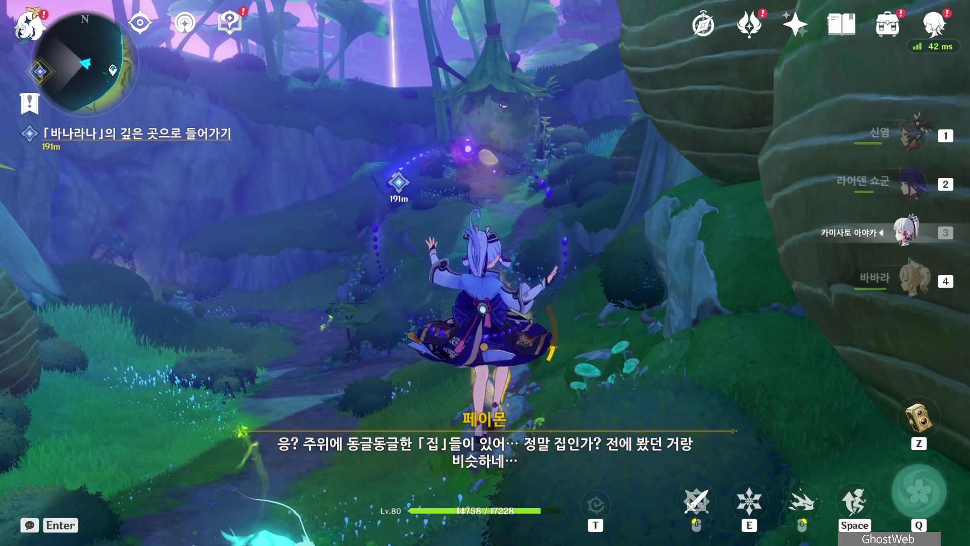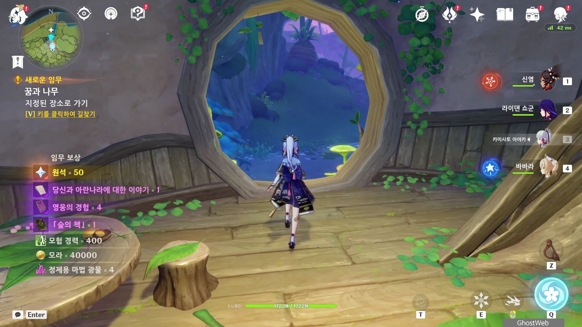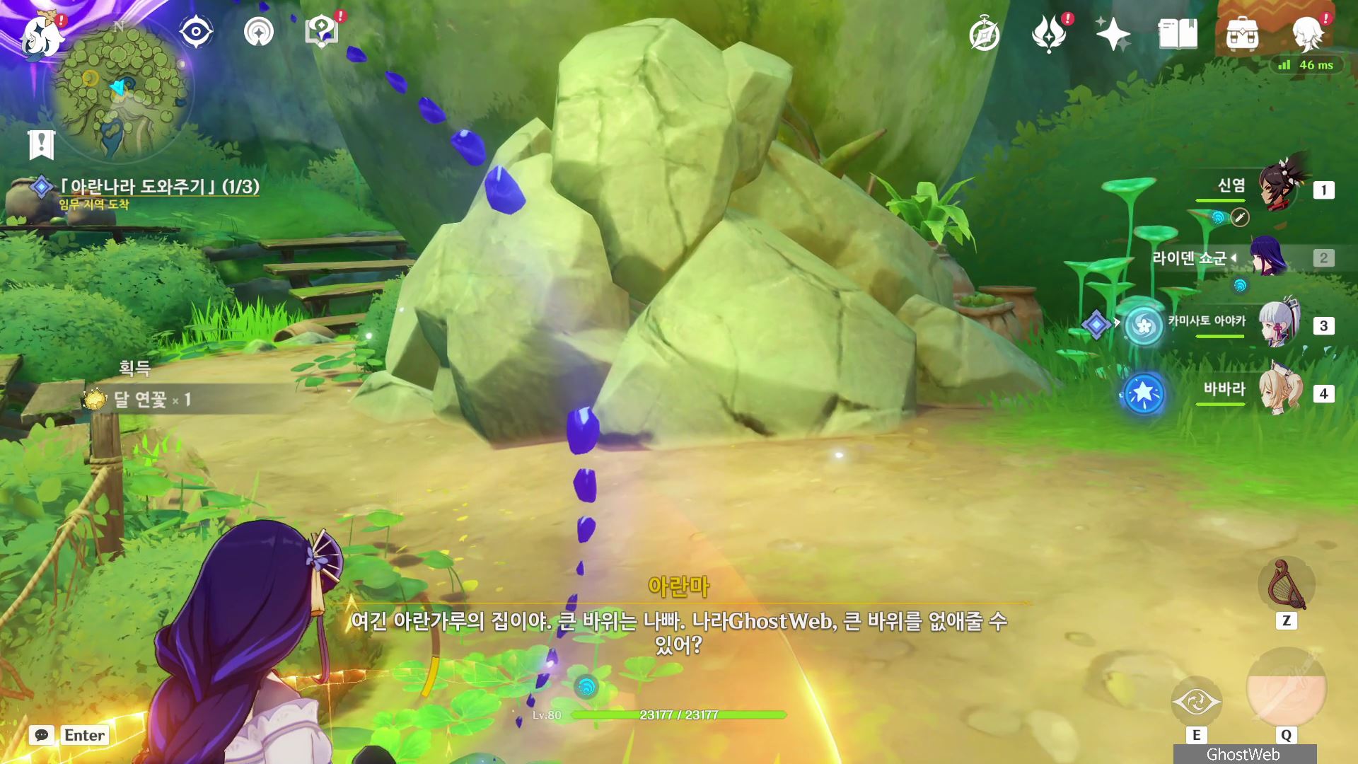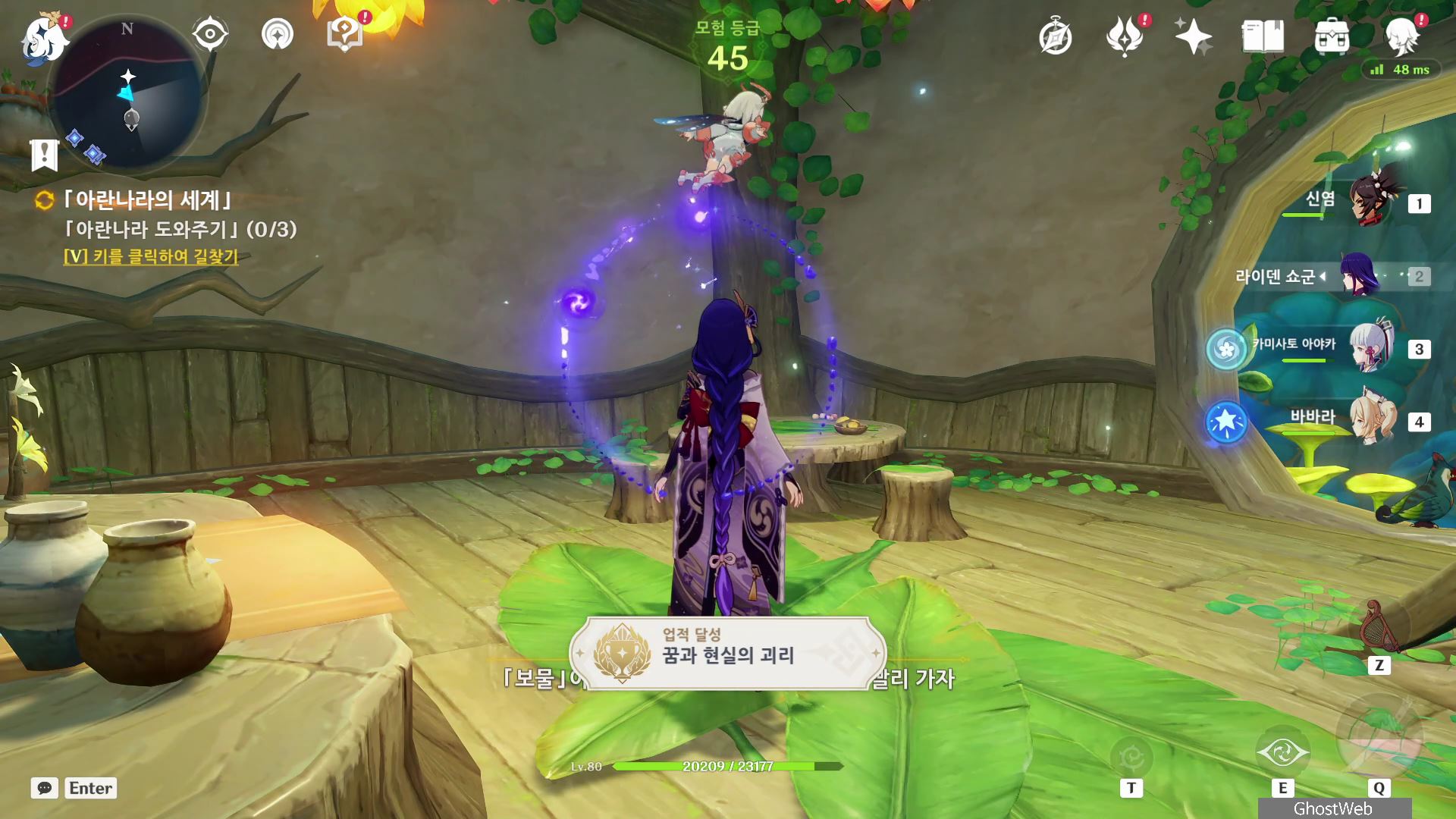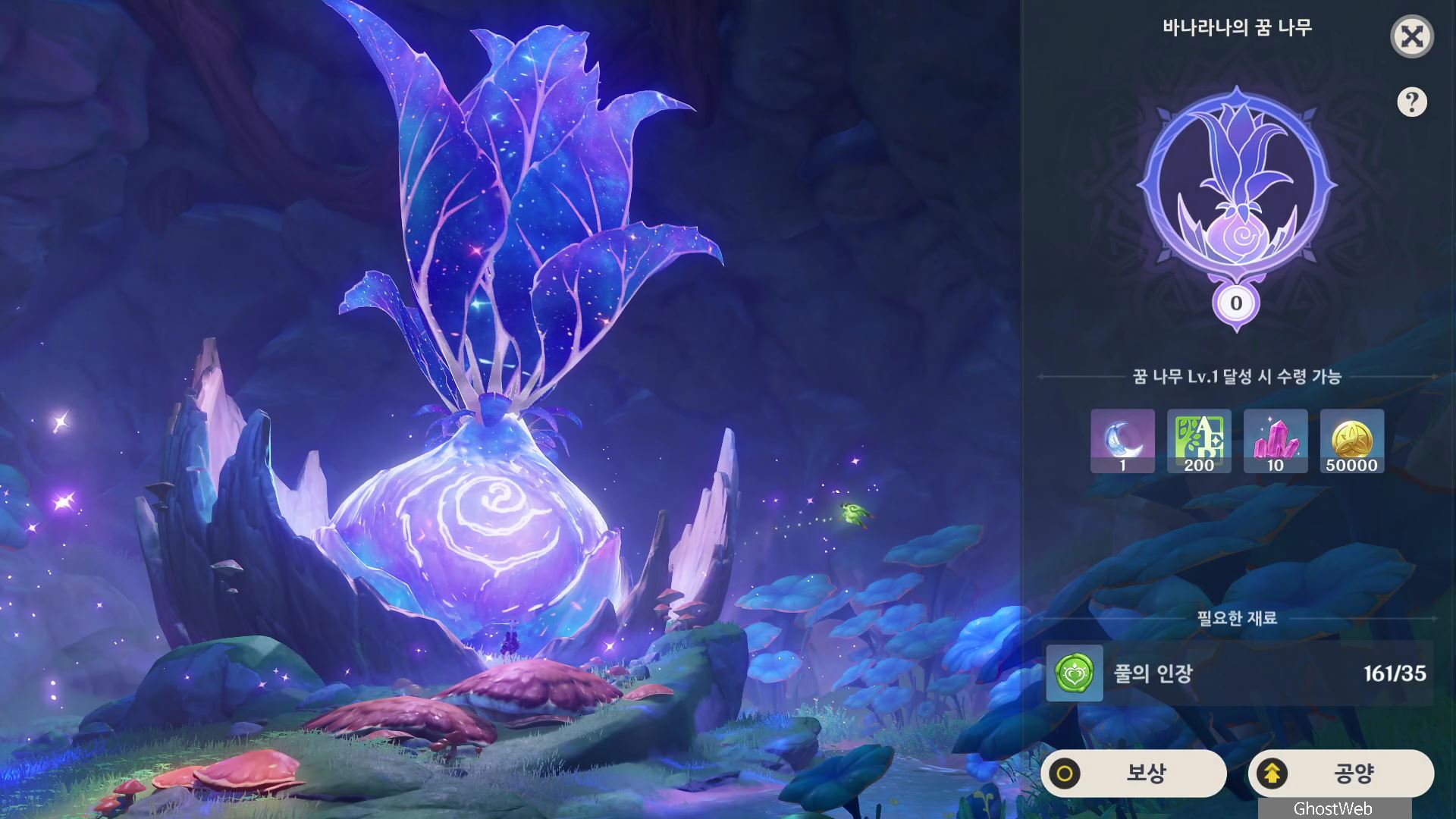 아란마, 아란자와 대화를 마치고 지도에 표시된 곳으로 가면 <바나라나의 꿈 나무>를 볼 수 있는데, 여기서 보물상자를 열어 모아온 풀의 인장을 공양해 보상을 얻을 수 있어요.
