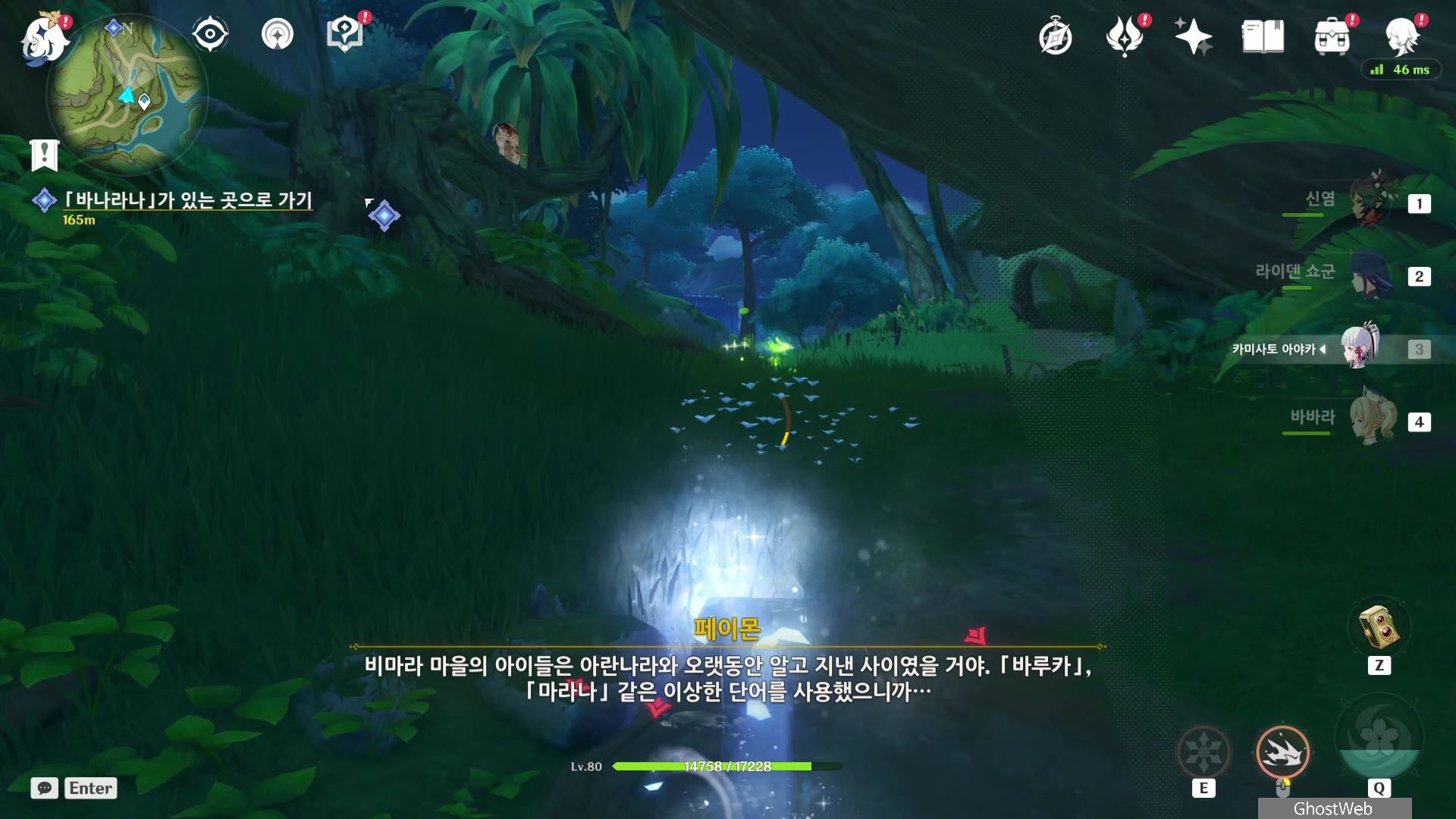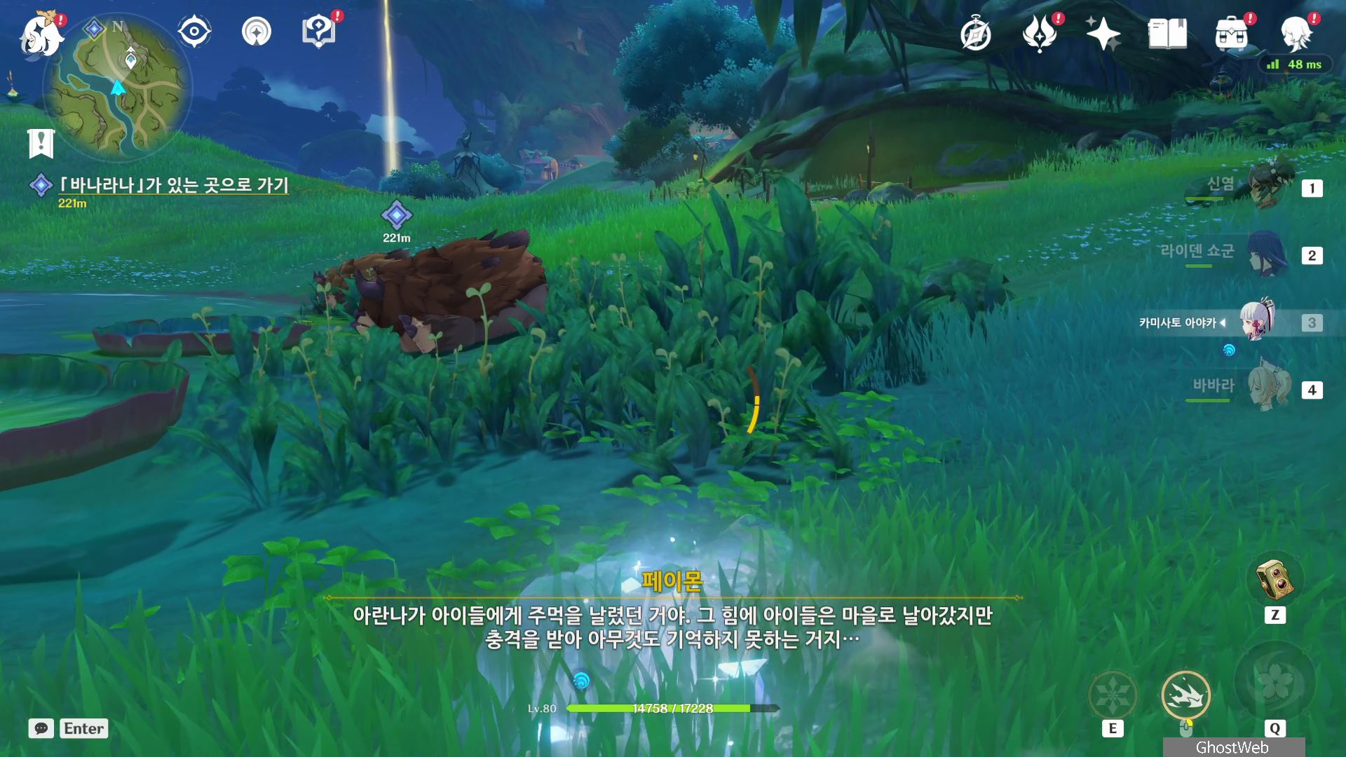 이동하면서 페이몬과 대화를 통해 아란나는 아이들이 마을로 돌아갈 수 있도록 도와주고 있었다며, 바루카, 마라나 같은 단어를 아는 것을 봐서 마을의 아이들과 오랫동안 알고 지낸 사이같다는 말을 해요.