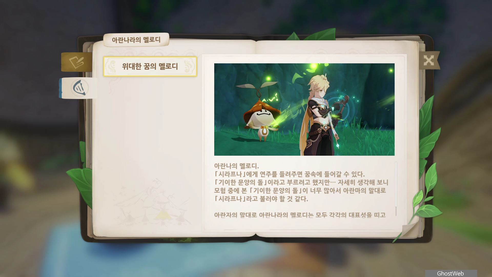[원신] 새싹이 싹트는 멜로디 (숲의 책 | 제2장 - 꿈속의 모밭, 아슈바타 전당, 바소마 열매, 아란