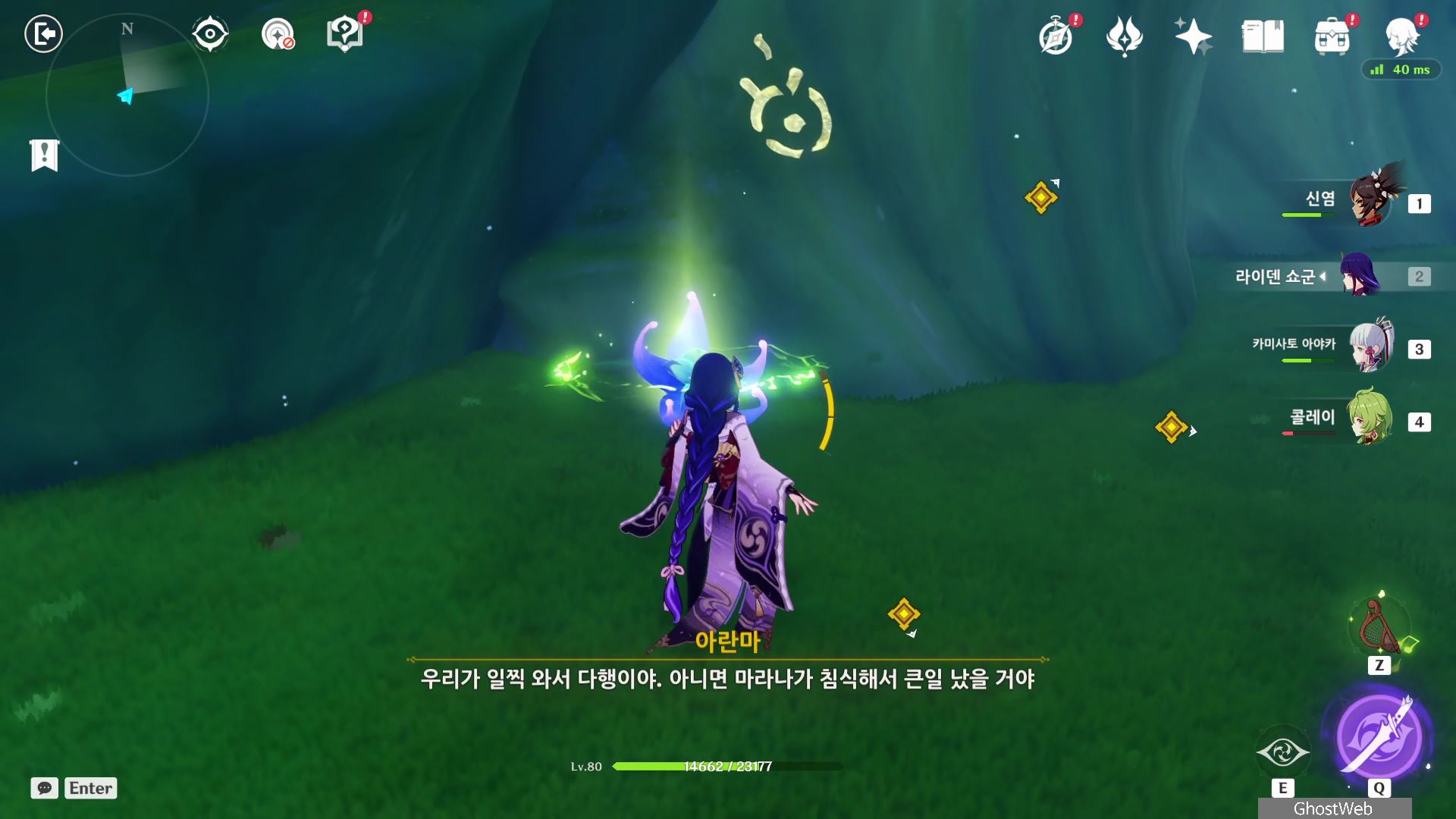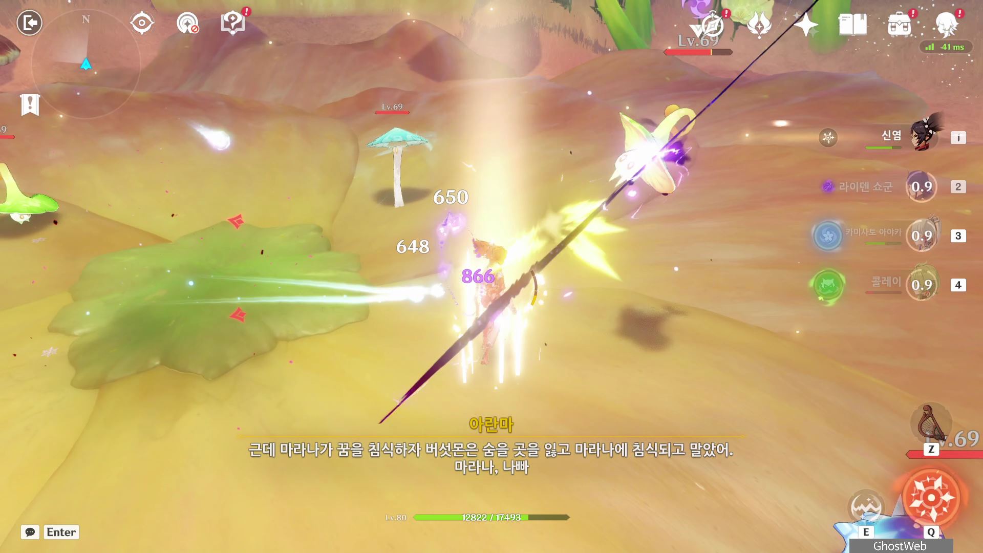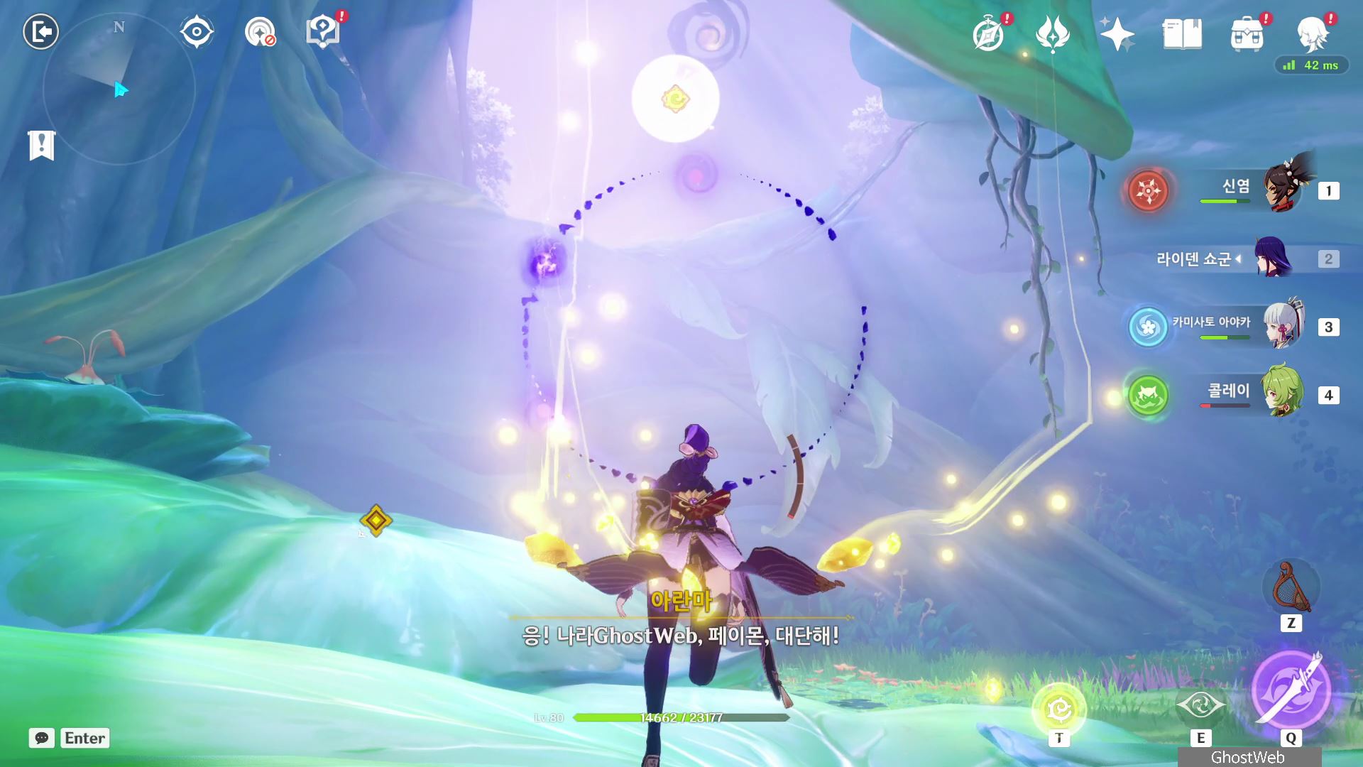 마라나의 사도를 처치하고 죽음의 땅을 제거한 후, 아슈바타 전당의 나무를 조사하면 바사라 나무 꿈속으로 이동하게 되는데, 내부에 풀 씨앗을 얻고 공중에 떠 있는 과녁을 맞춰야하는 기믹이 있기 때문에 활 캐릭터를 파티에 편성하고 바사라 나무 꿈 속으로 들어가세요. (콜레이 추천)