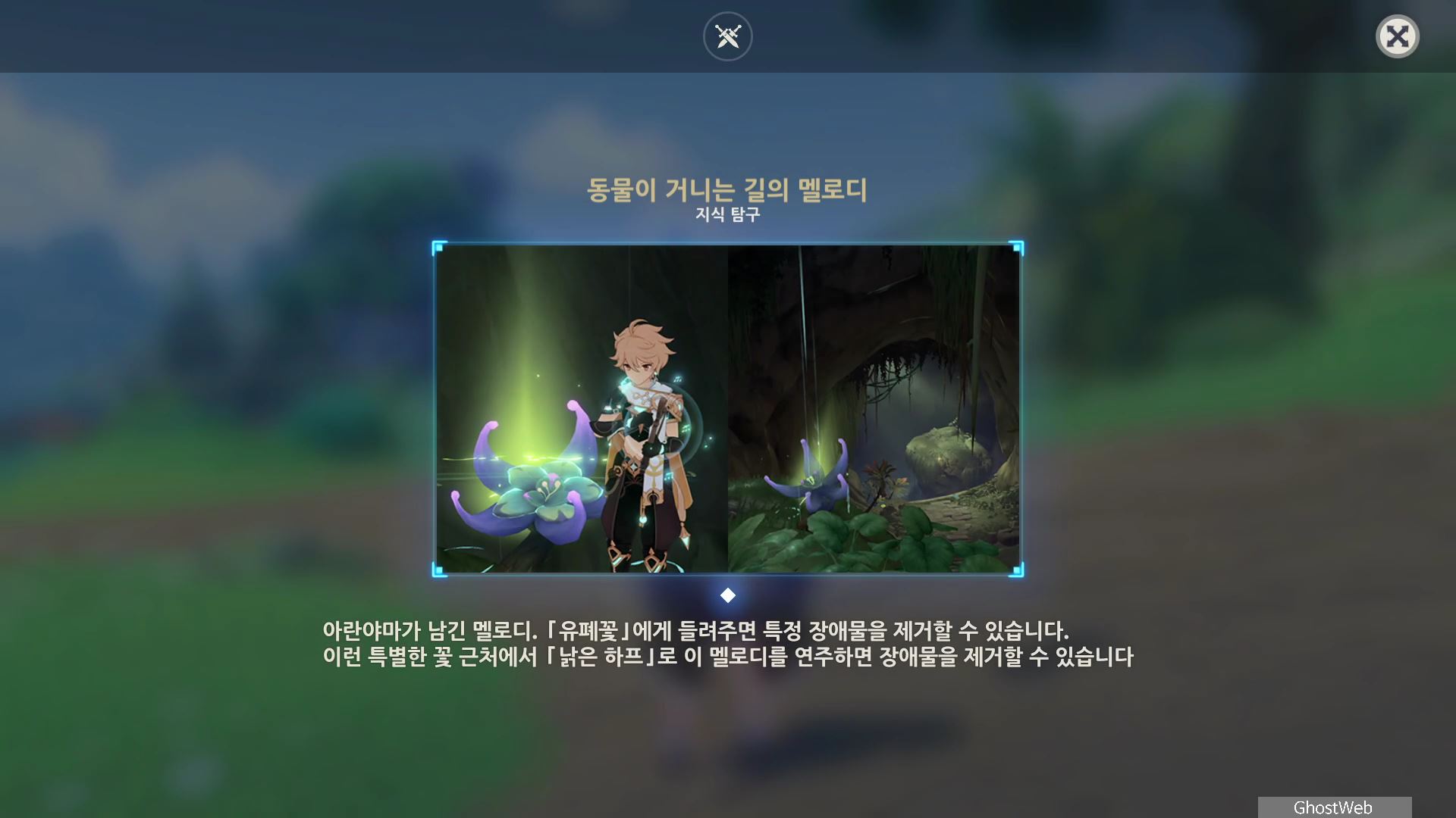 | [원신] 비밀 통로로 통하는 멜로디 (숲의 책 | 제2장 - 꿈속의 모밭, 아슈바타 전당, 바소마 열매, 아란야사) (0) | 2022.10.19 |