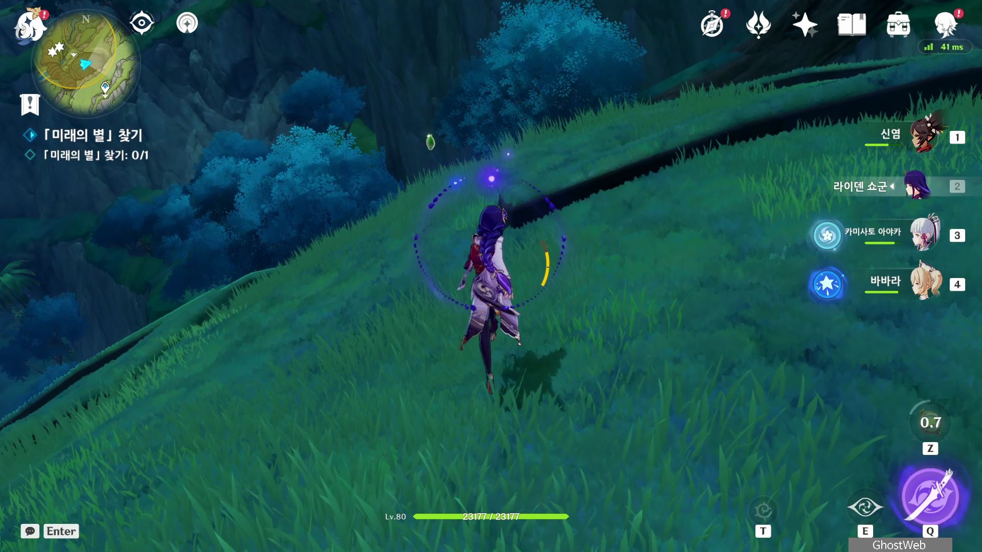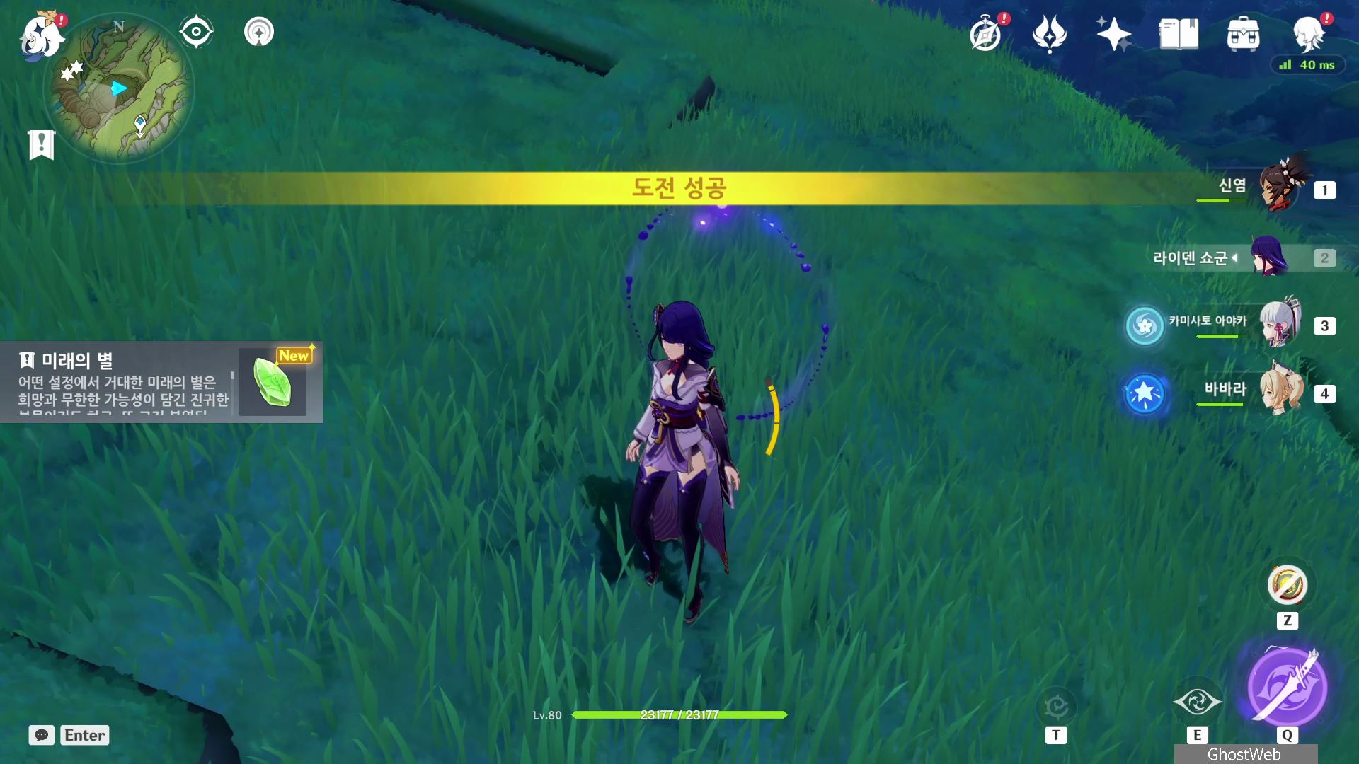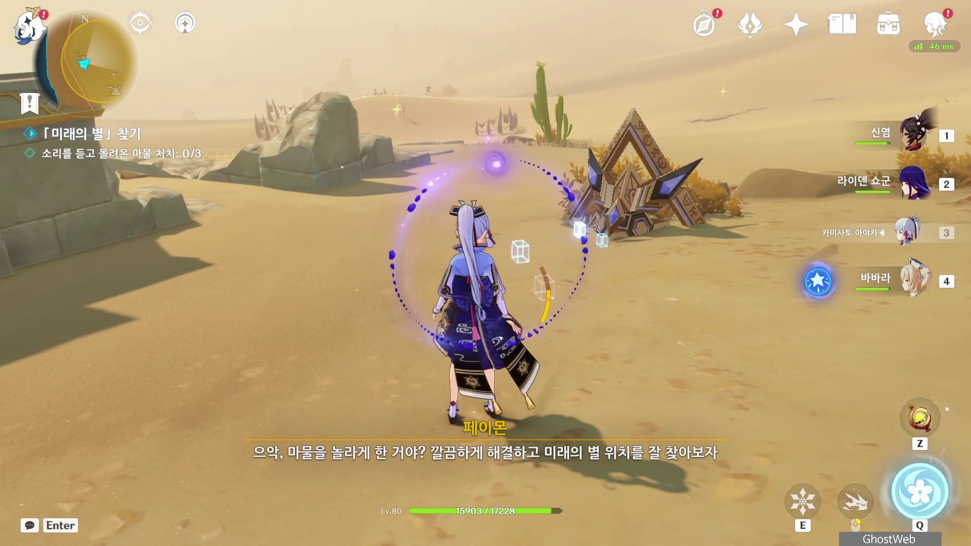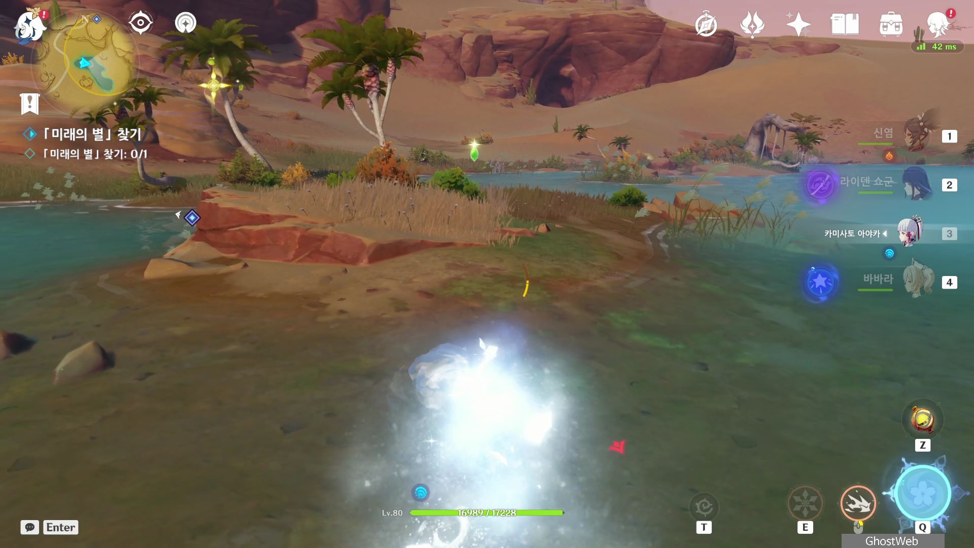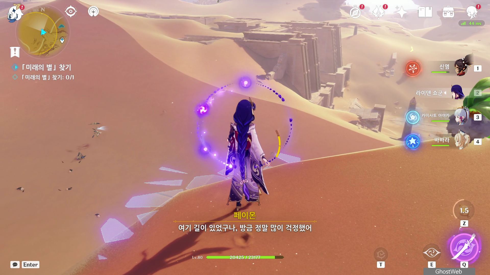 그 다음 미니맵에 이벤트 영역이 표시되는데, 윈 기준 9시 방향에 있는 부셔진 유적지 같은 곳 근처에 가면 이벤트 포인트다가가면 나타나는 적들을 처치하고 근처에 나타난 윈드 필드를 타고 유적지 기둥 위에 있는 미래의 별을 얻으면 돼요.