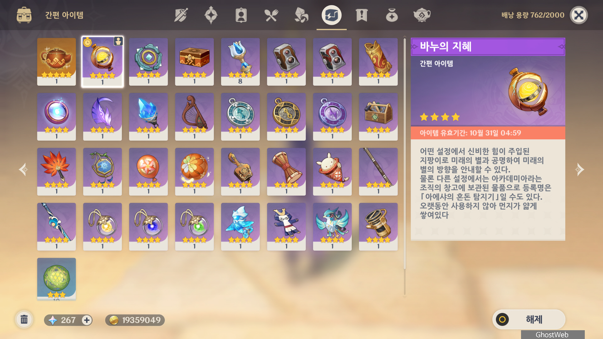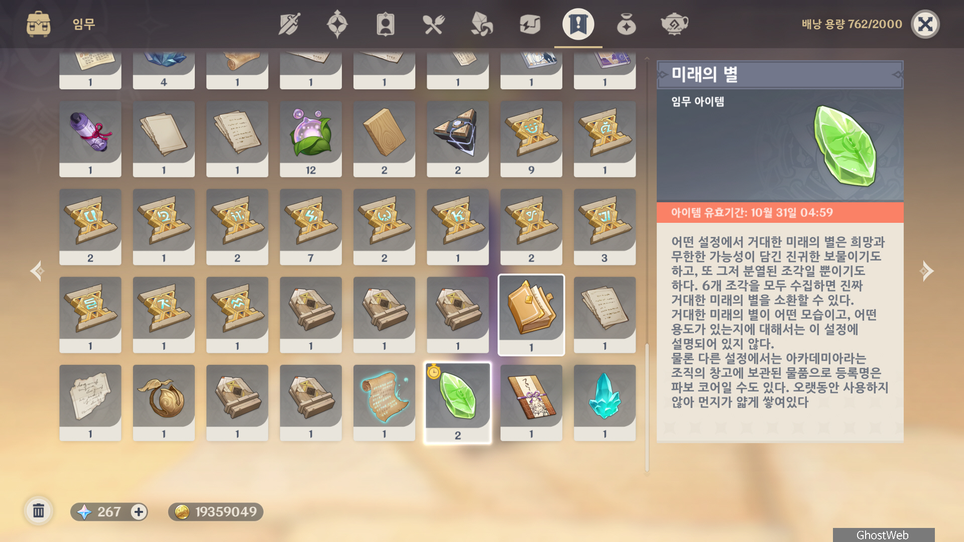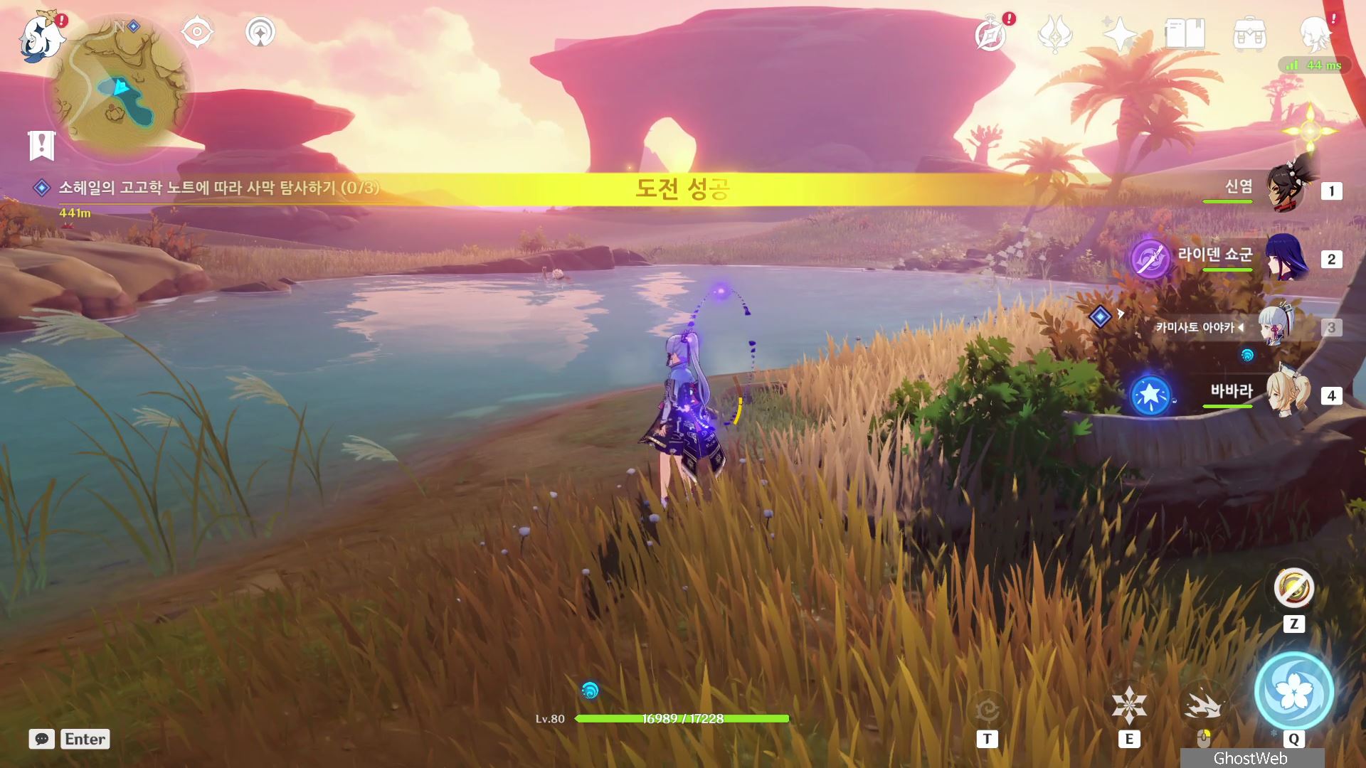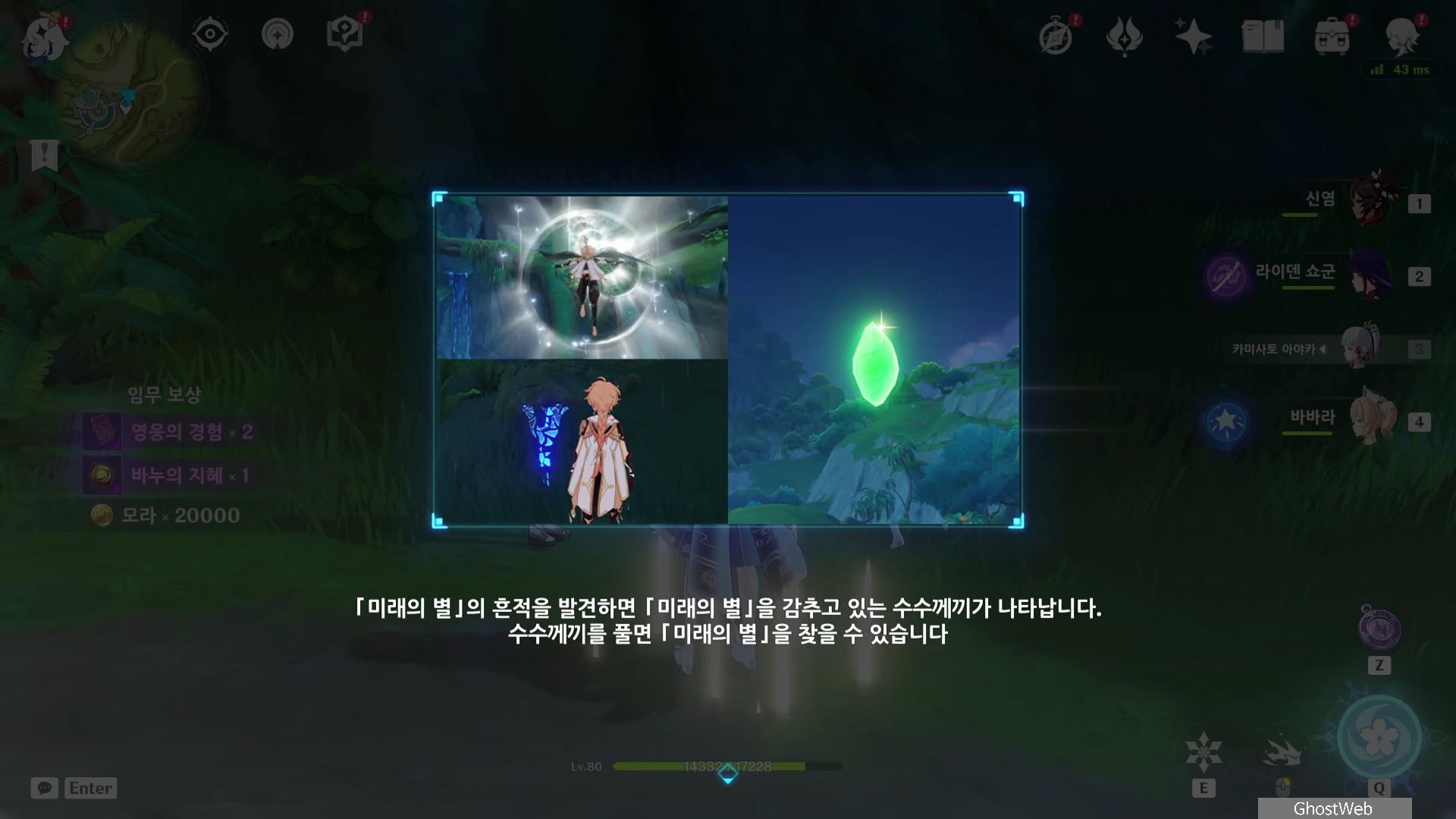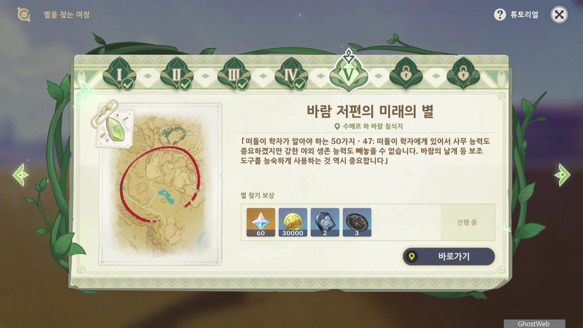보상 : 원석 60개, 30000 모라, 창의의 인도, 오아시스 화원의 은혜