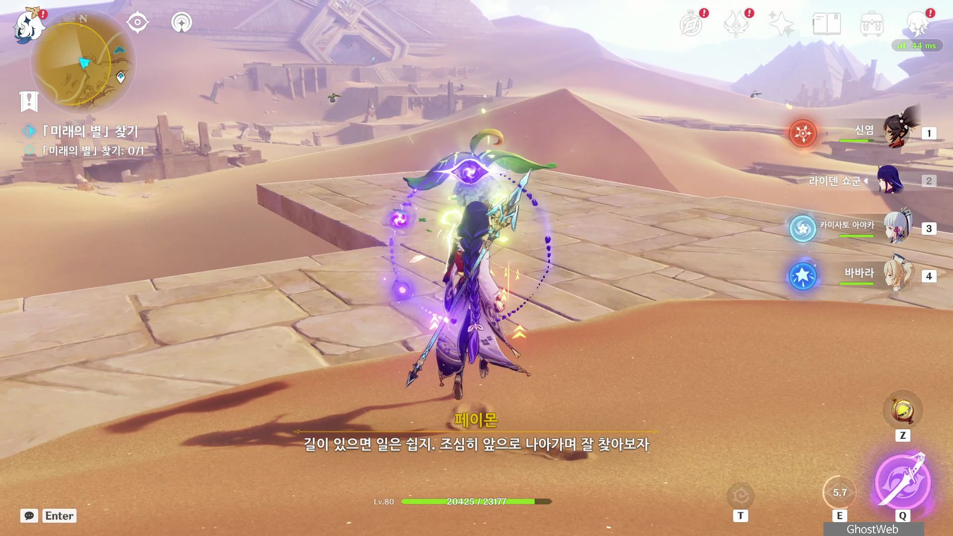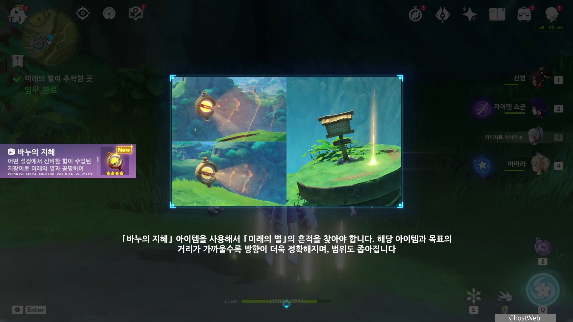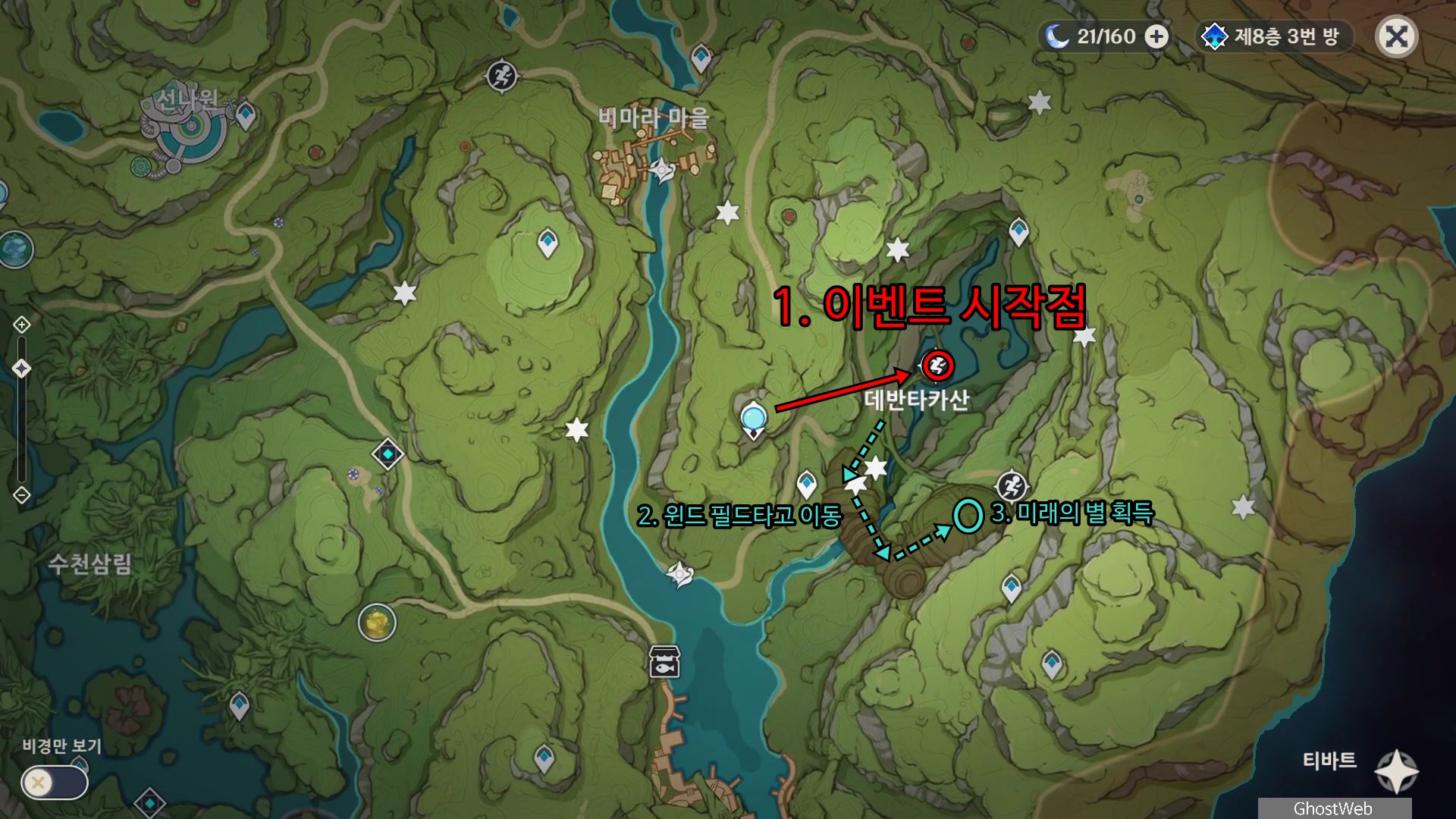 해당 이벤트는 <바누의 지혜>라는 아이템을 장착하고 이벤트 창에서 가르키는 지역에가서 해당 아이템을 사용하여 방향을 표시하는 곳으로 가서 윈드 필드 등을 타고 가 <미래의 별>을 획득하면 돼요.