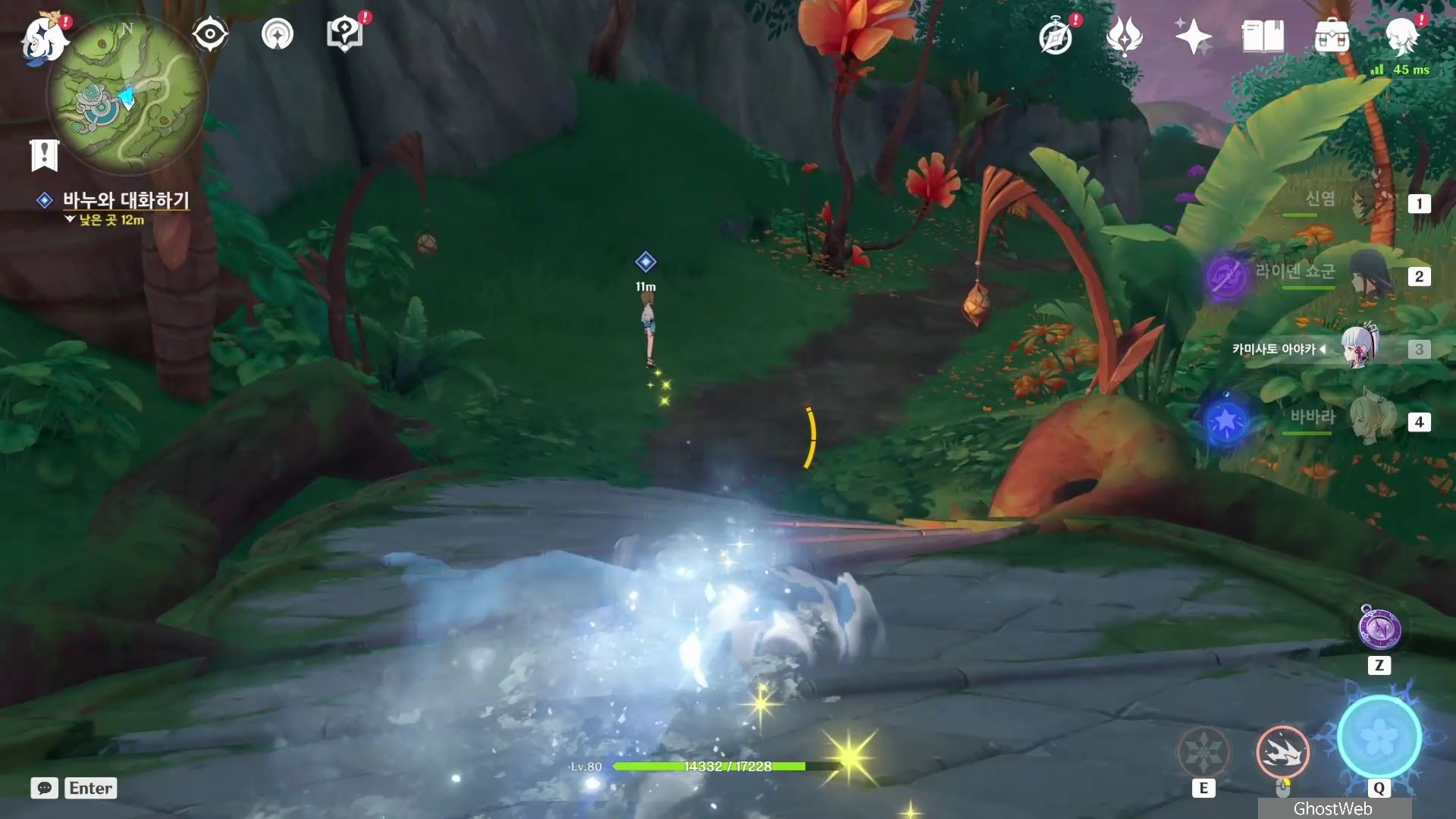 물론 캐릭터로 보이지 않는 길에 다가가면 살짝 투명화된 길이 보여 길을 찾아 갈 수 있는데, 비행하는 씨앗을 번개 원소 공격하지 않고 길을 찾으러 가다 길 끝(절벽, 낭떠러지)에서 떨어지면 다시 언덕으로 올라와 시작점부터 시작해야 되기 때문에 귀찮아요. (아야카 대시로 투명화된 길 이동 시, 길이 막힌 곳으로 돌진해도 떨어지지 않아서, 노가다로 찾아 볼 수는 있어요.)