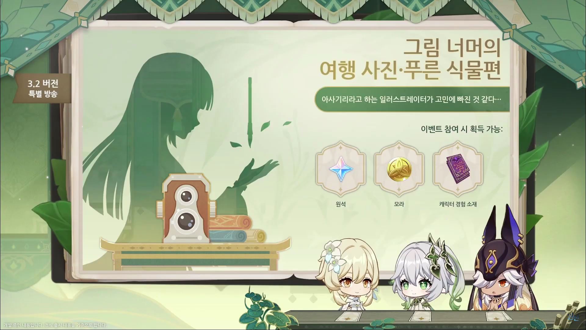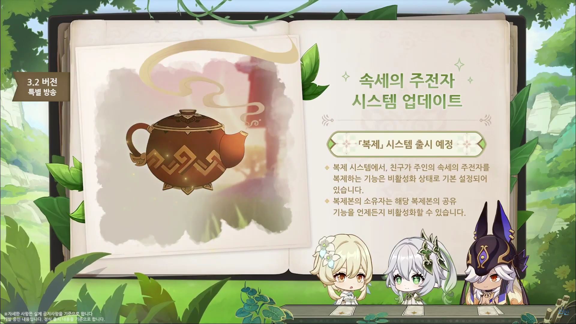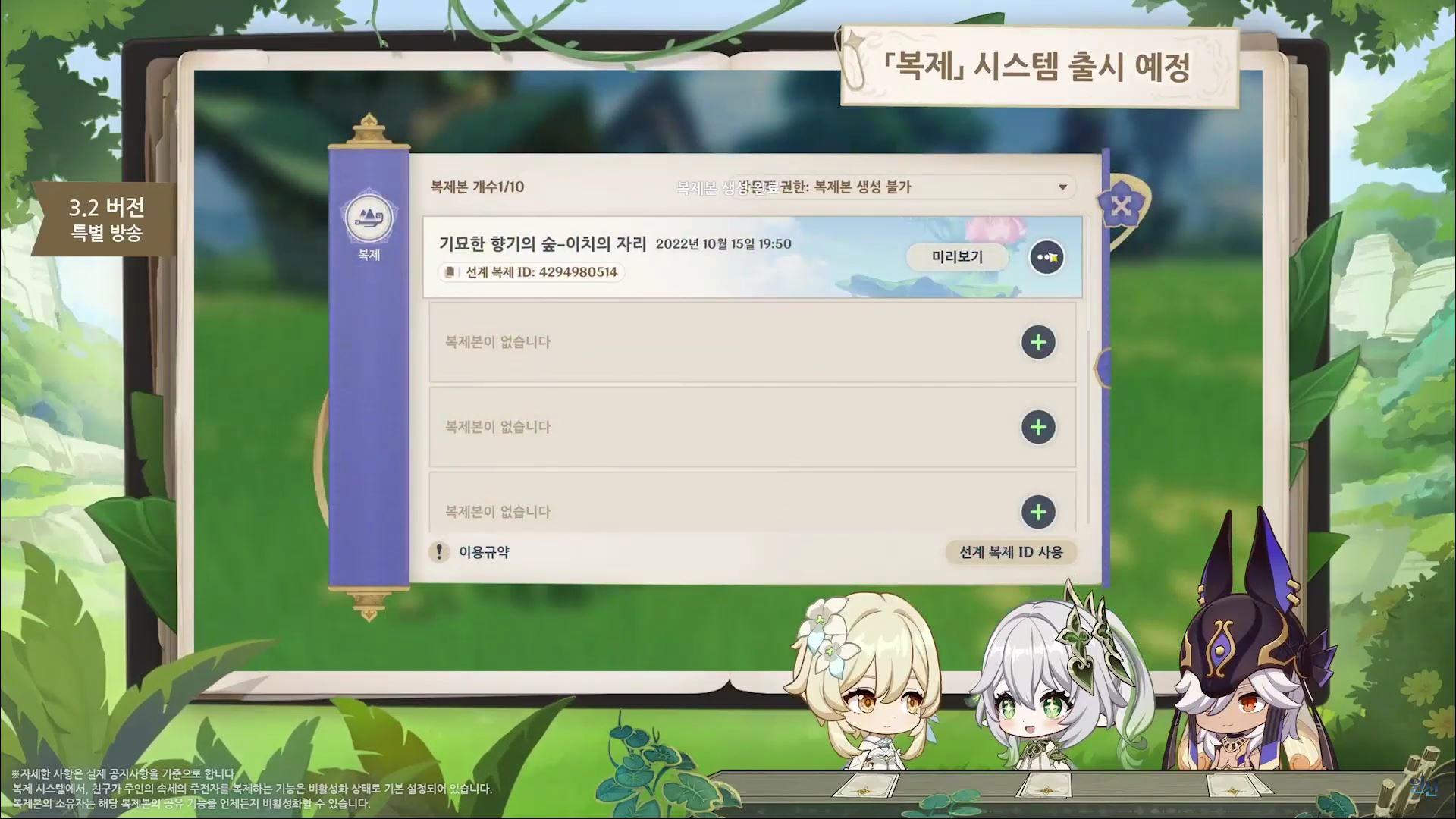 이번에는 2022-10-23에 방송된 원신 3.2 버전 특별 방송 내용을 정리해보도록 할게요.