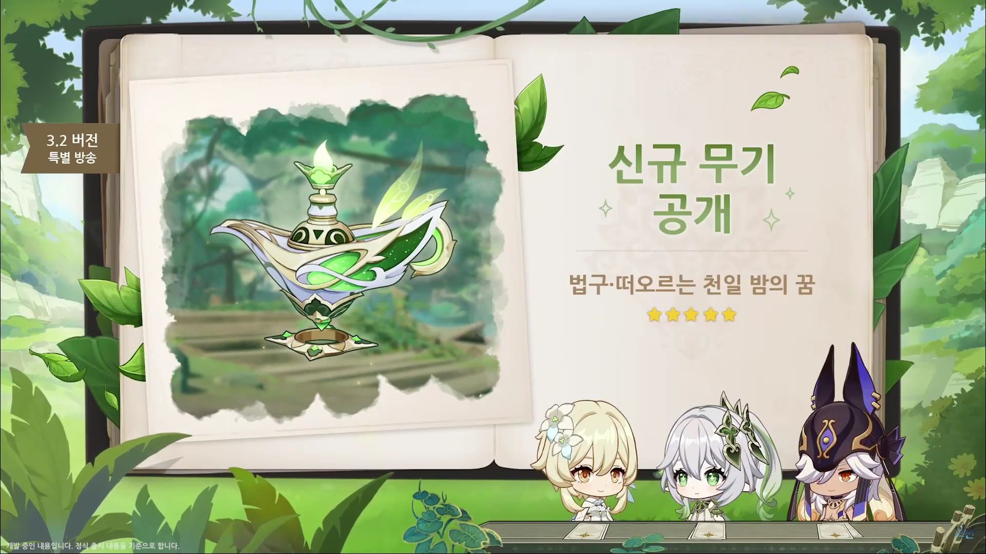 ○ 떠오르는 천일 밤의 꿈 (5성, 법구, 나히다 전용 무기 예상)