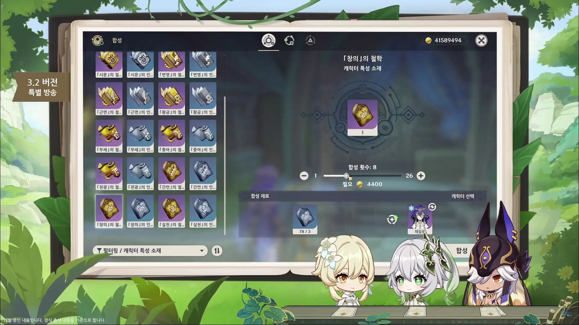 · 캐릭터 육성 소재 합성 시 일정한 확률로 생산량의 2배르 획득 가능