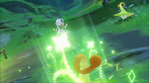 · 명중된 풀의 신에 표시된 특수한 표식에 의해 연결되고 적들에게 원소 반응을 일으키거나, 풀 원핵으로 피해를 입히면 나히다가 발동하는 탐험의 정화 피해를 입음.