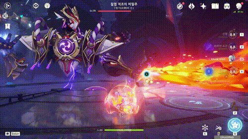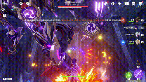 스카라무슈 보호막이 제거되면 <파멸의 엔진>이 나타나는데 <찰나의 생멸>이 도래하기 전에 활 캐릭터로 엔진을 파괴하여 공격을 끊으세요.