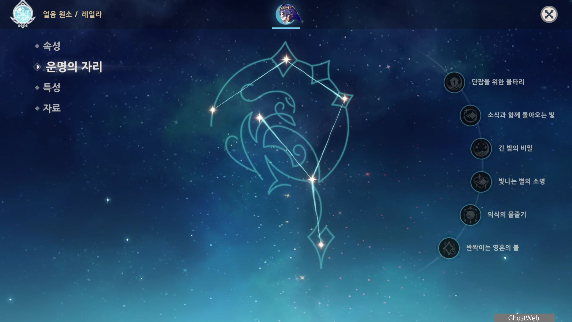 - 별빛탄이 적을 명중 시, 근처에 있는 평안한 잠의 장막(원소 스킬 - 보호막)이 저녁별 1개를 생성한다.
