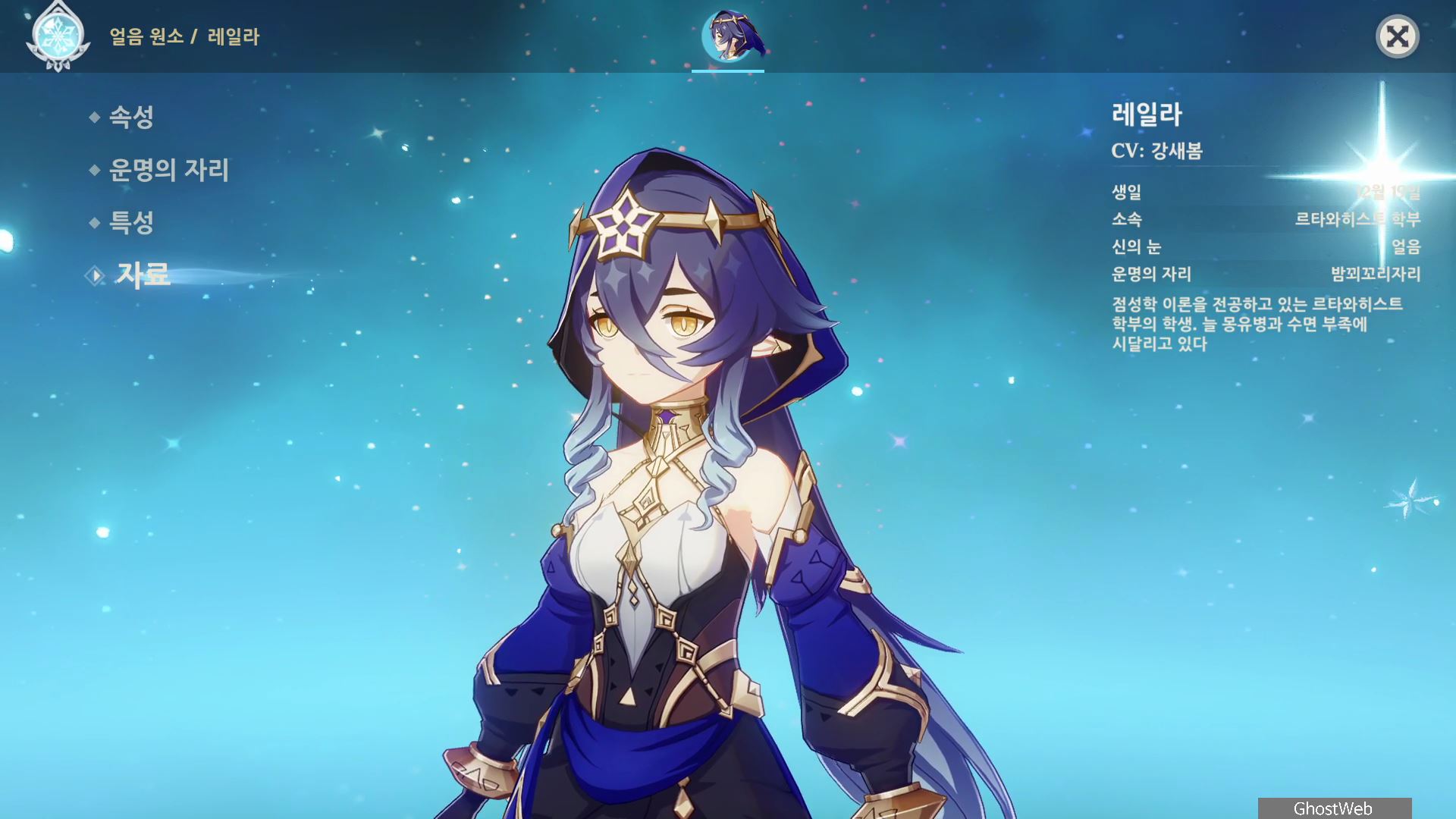 이번에는 4성 얼음 원소 캐릭터인 레일라에 대해서 정리해보도록 할게요.