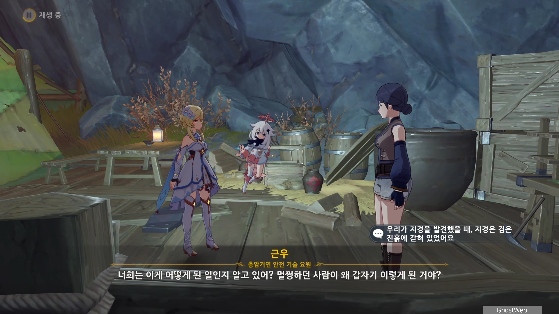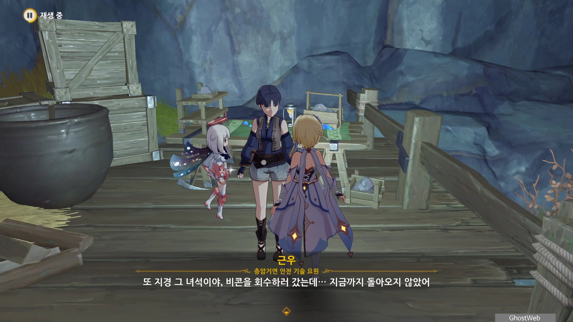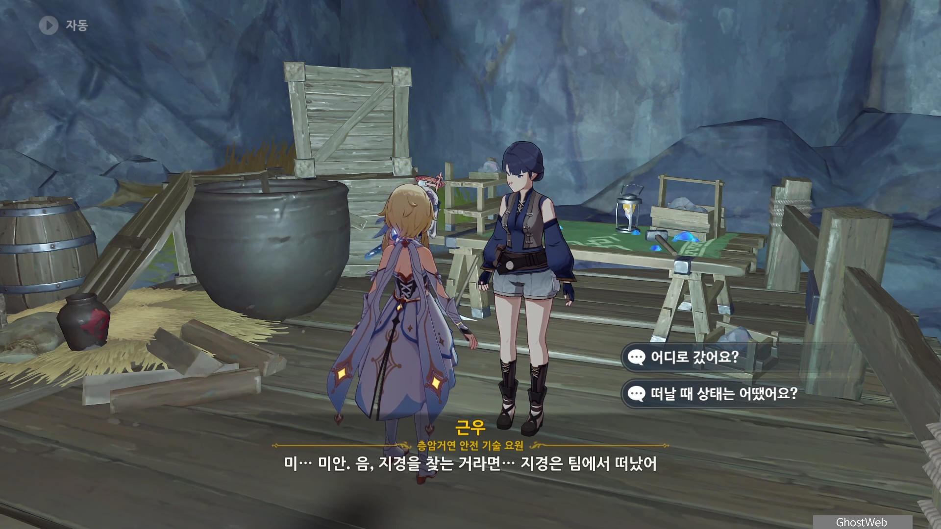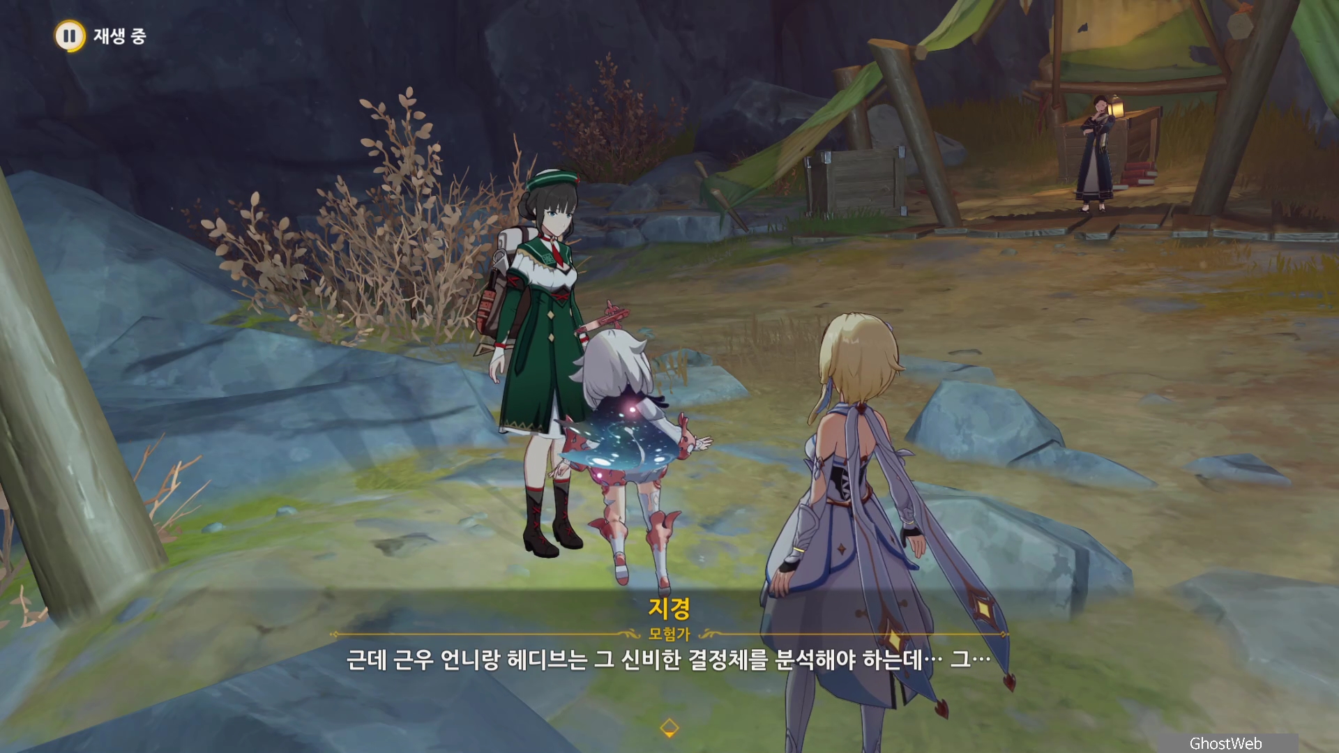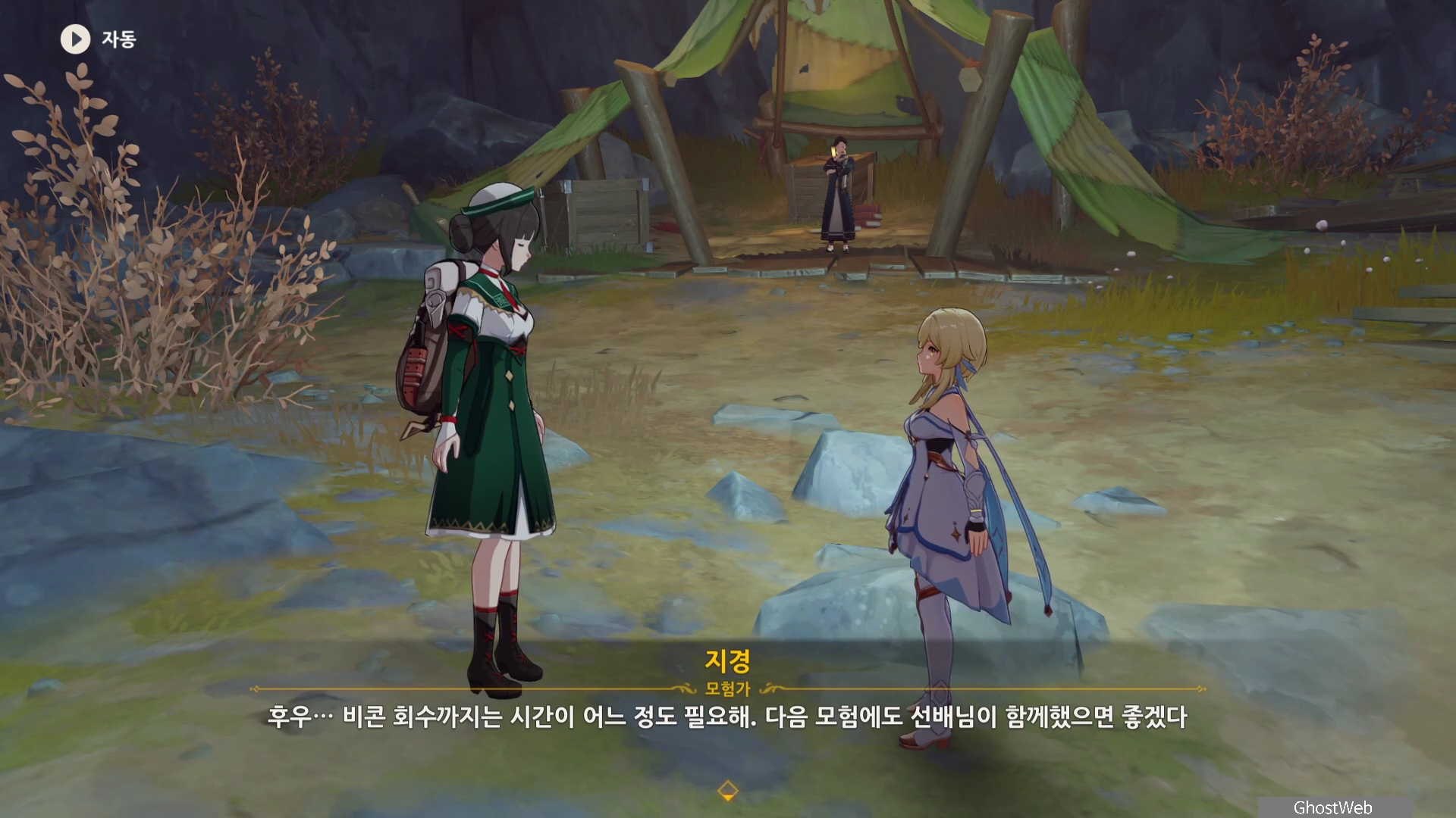 다음 날 야영지 한 편에 있는 근우와 대화를 하면 지경이 비콘을 회수하러 갔는 돌아오지 않았다면서, 지경을 찾아달라는 부탁을 받아요.