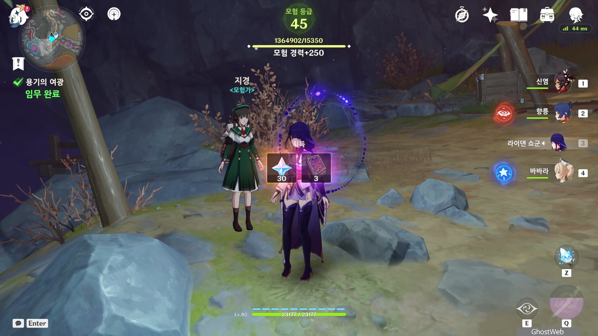 야영지에서 지경과 대화를 하면 비콘 설치에 도움을 줘서 고맙다며, 보상으로 원석 30개를 얻을 수 있어요.