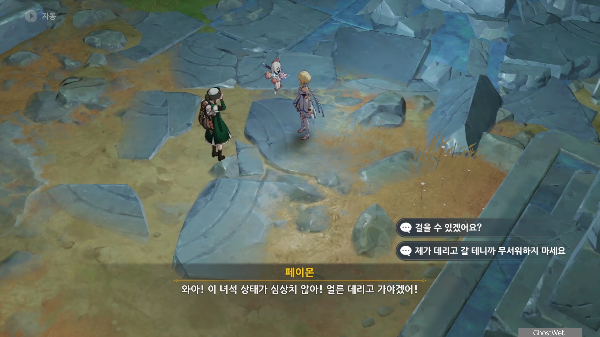 이전 임무에서 비콘을 설치한 곳을 돌아다녀야 되는데, 지도 기준 야영지에서 오른쪽에 <기괴한 돌 광장 아래>가 몬스터 들에게 둘러쌓인 자경을 구해서 다시 야영지로 돌아오면 돼요.