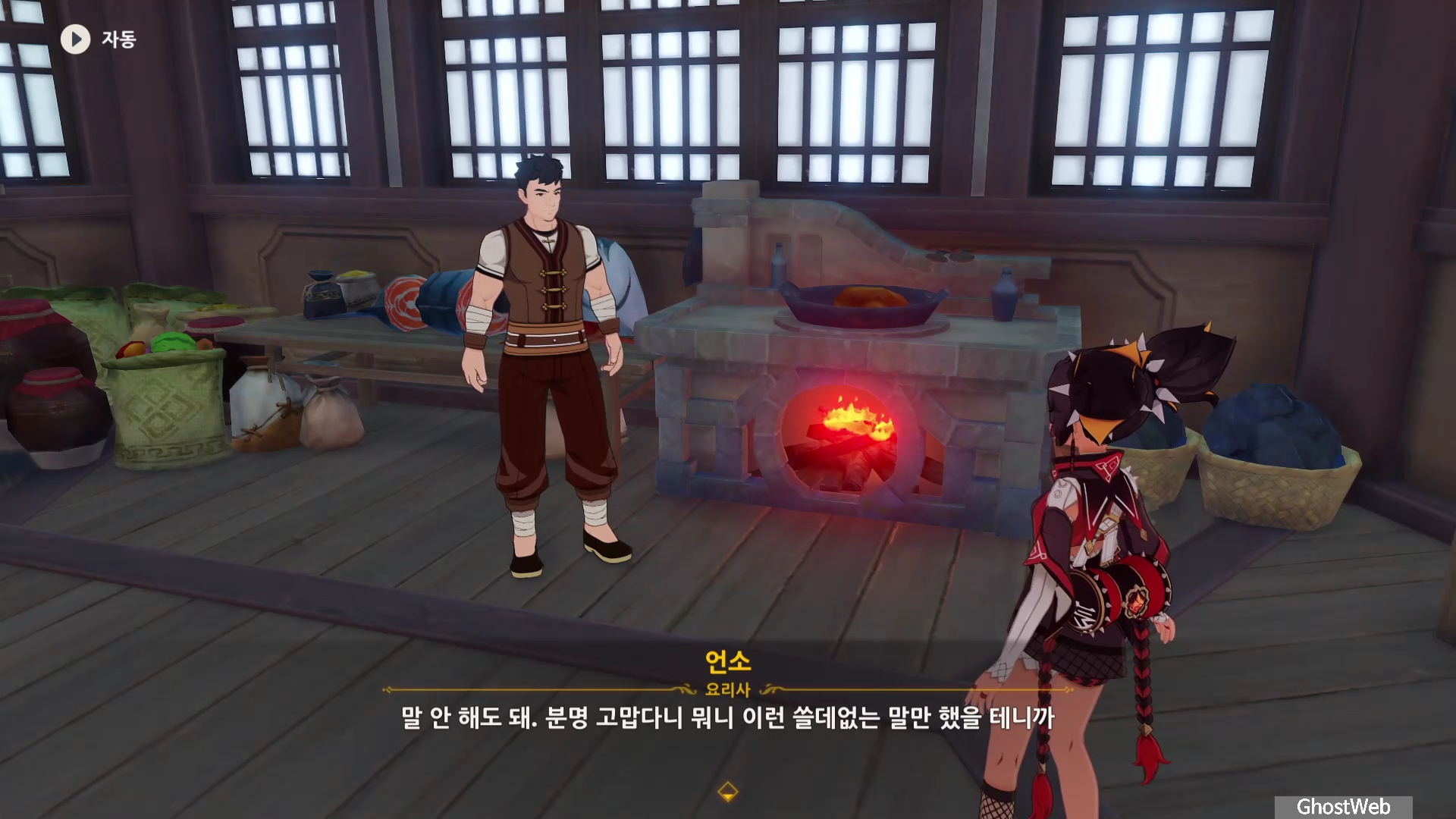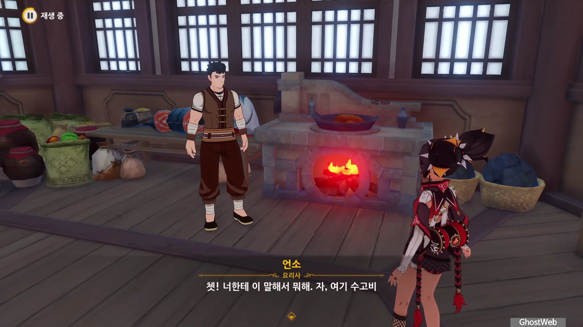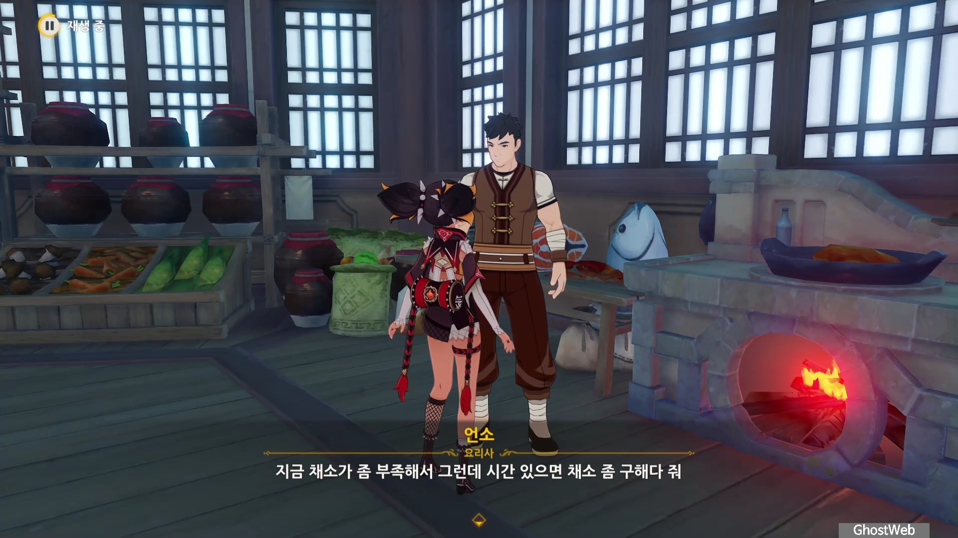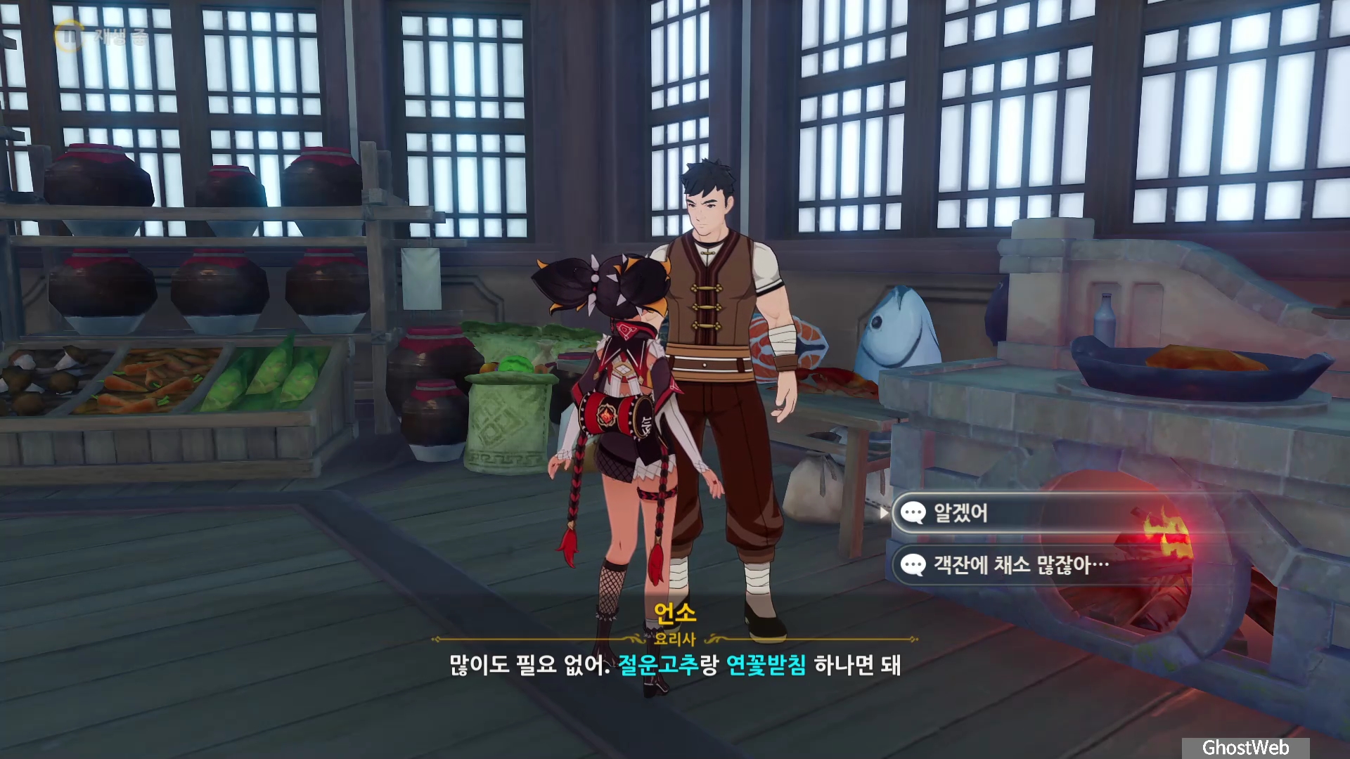 망서 객잔 주방에 있는 언소와 대화를 통해 채소가 부족하다면 절운고추와 연꽃받침을 구해달라는 부탁을 받아요.