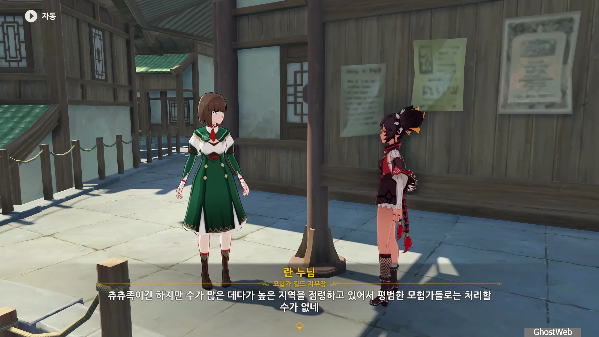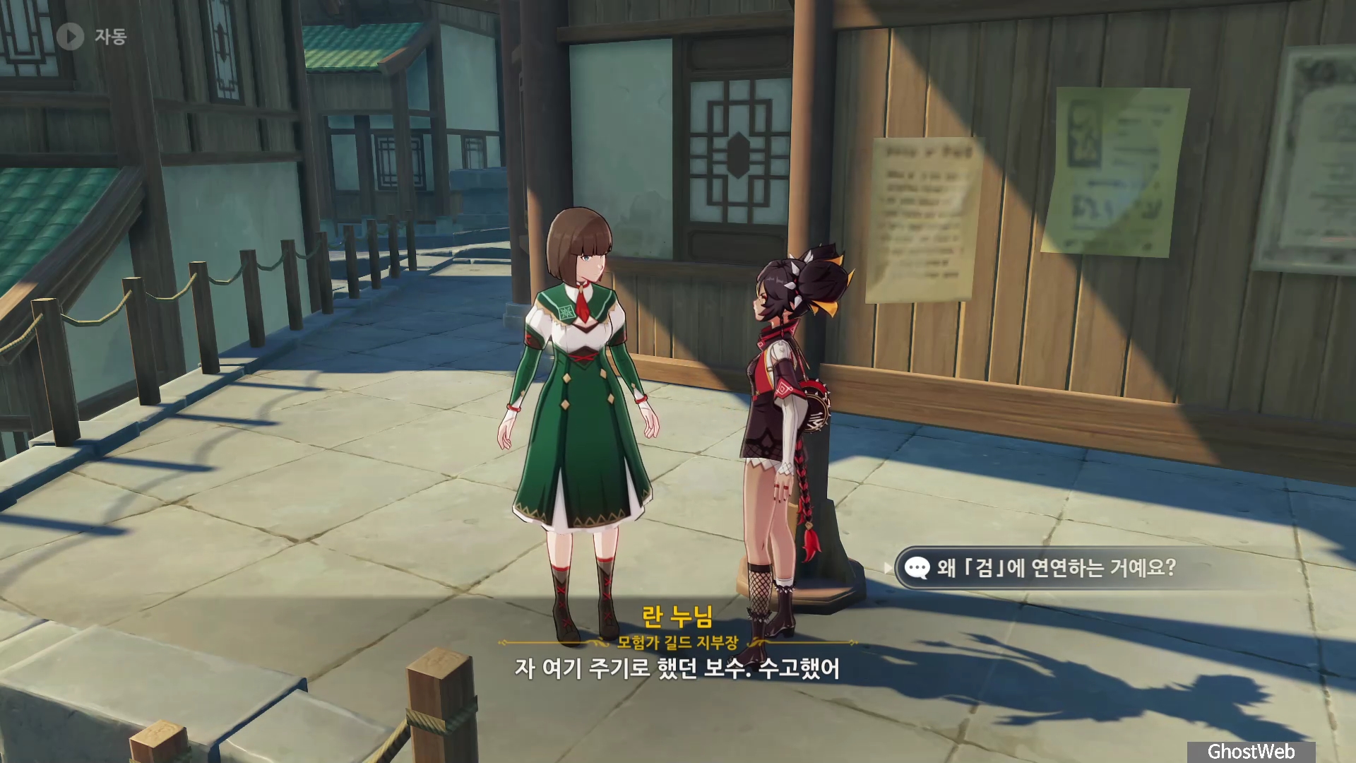 리월항 모험가 길드 왼쪽 편에 있는 모험가 길드 지부장인 <란 누님>에게 대화를 통해 임무를 시작할 수 있는데요.