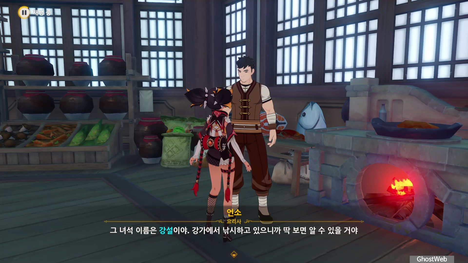 절운고추와 연꽃 받침을 구해서 언소에게 주면, 강가에서 낚시하고 있는 강설에서 음식을 전달해달라는 부탁을 받아요.