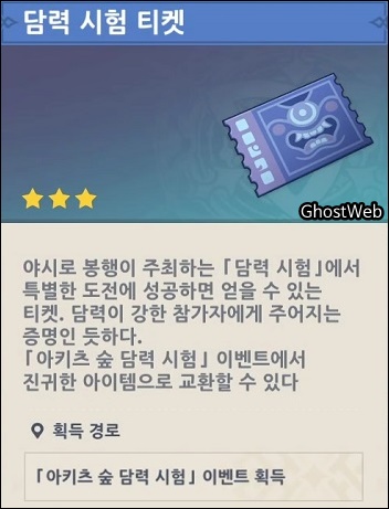 - 꽃잎비 (4성 한손검), 원석, 담력 시험 티켓