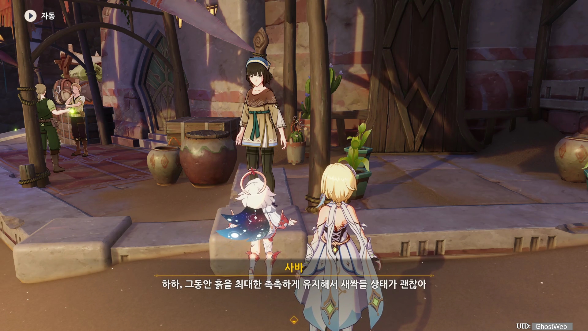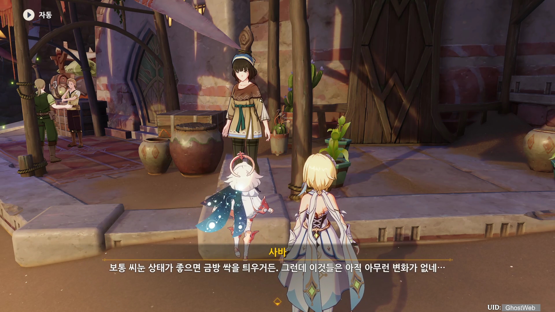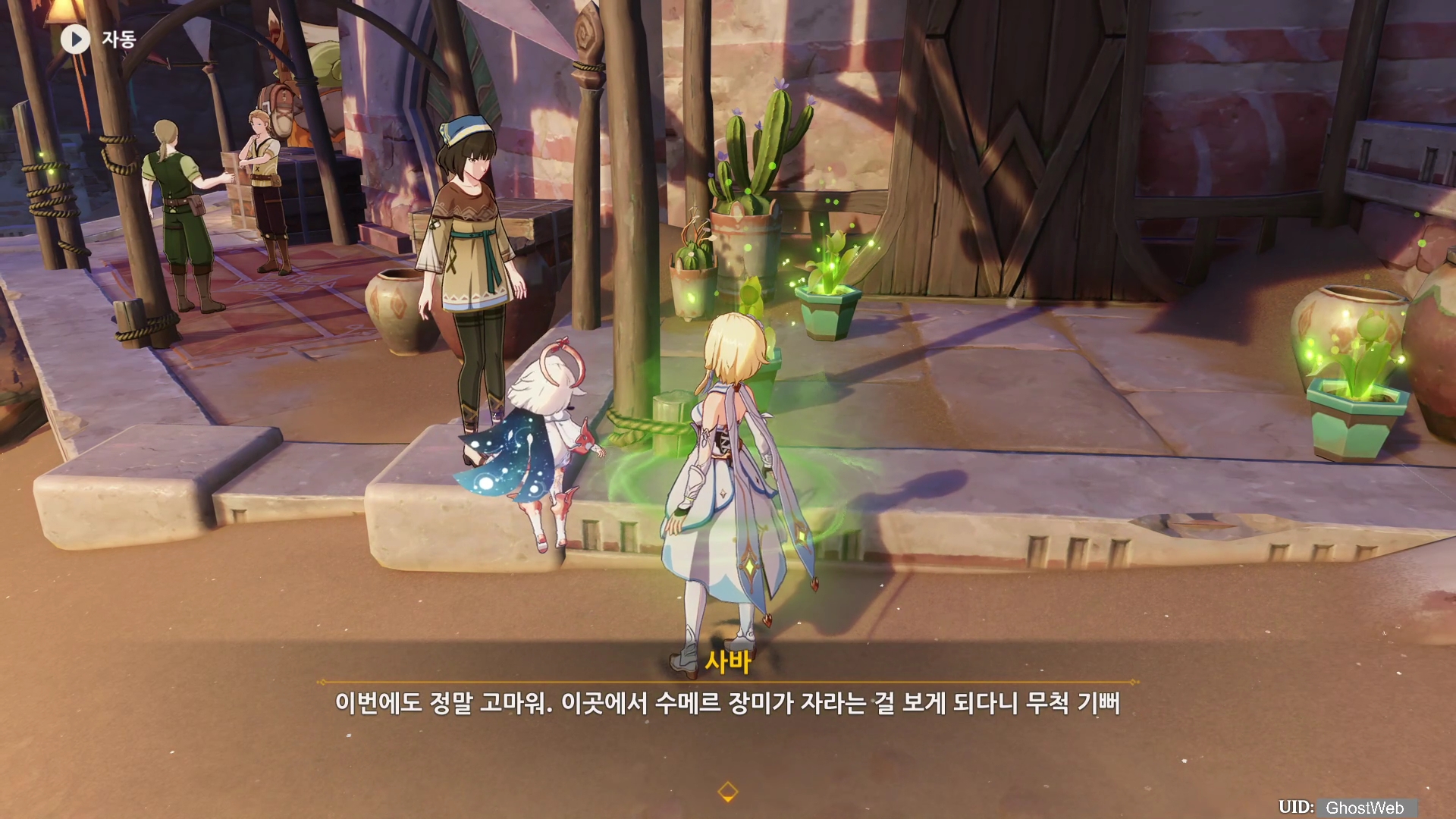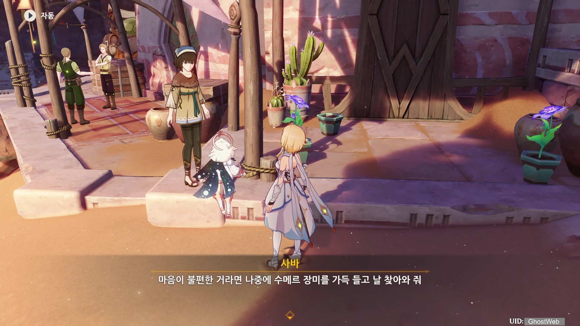 이번에는 수메르 사막 지역 아루 마을에 있는 사바에게 대화를 걸면 진행할 수 있는 월드 임무를 정리해보도록 할게요. 아루 마을에 있는 사바 근처에 가면 지야드가 수메르 동요를 부르고 있는