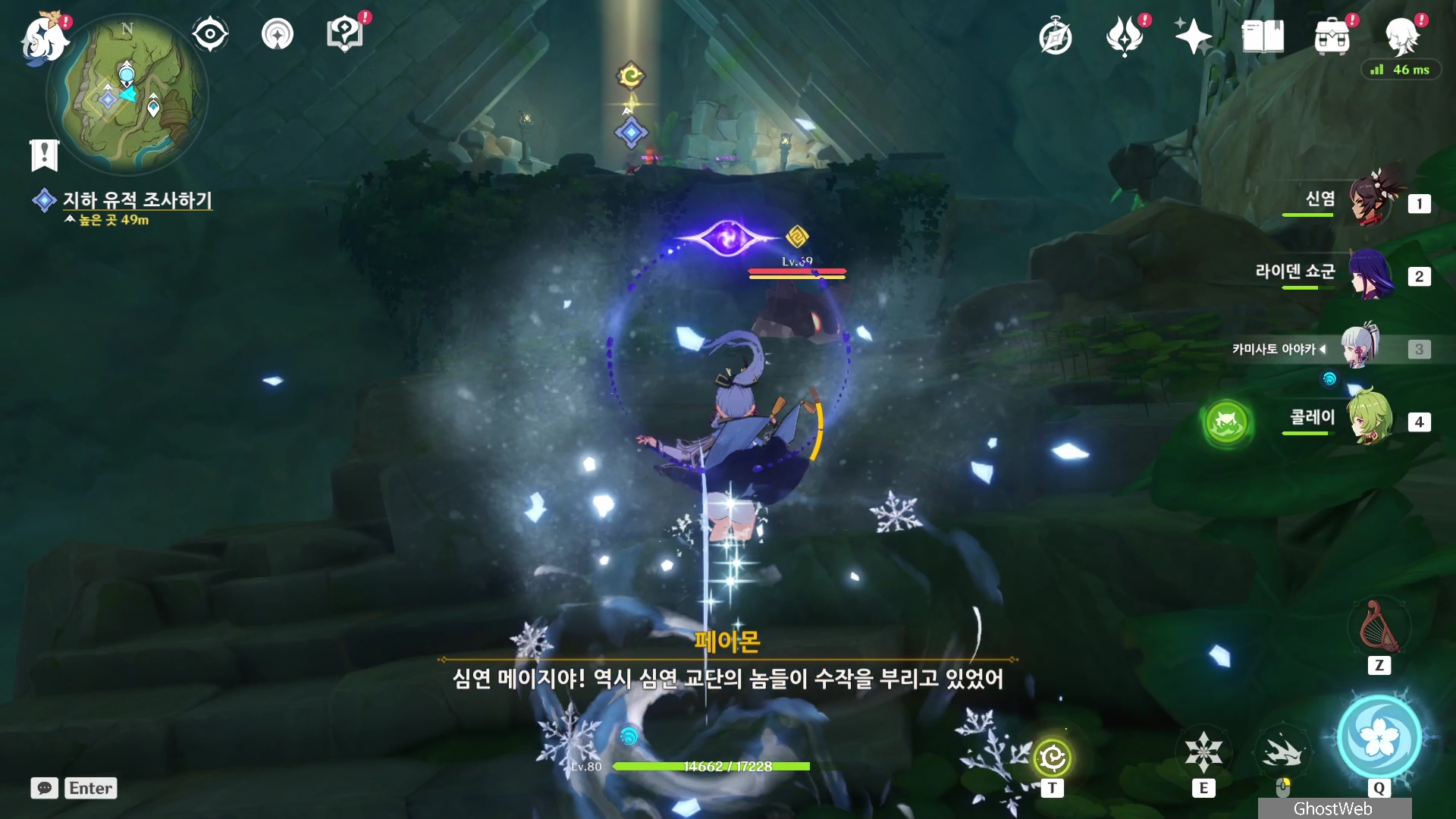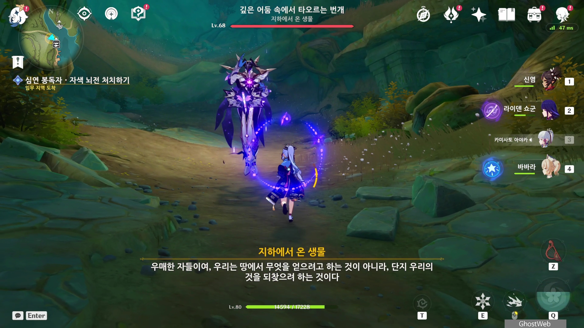 지하 동굴을 탐험하면서 지도에 표시된 곳을 조사하며 앞으로 나아가, 지하에 있는 워프 포인트를 활성화하고 동굴 끝 쪽에 가면 아란리캔이 말한 수상한 나라인 쟈자리(묘론파 학자)를 만날 수 있어요.